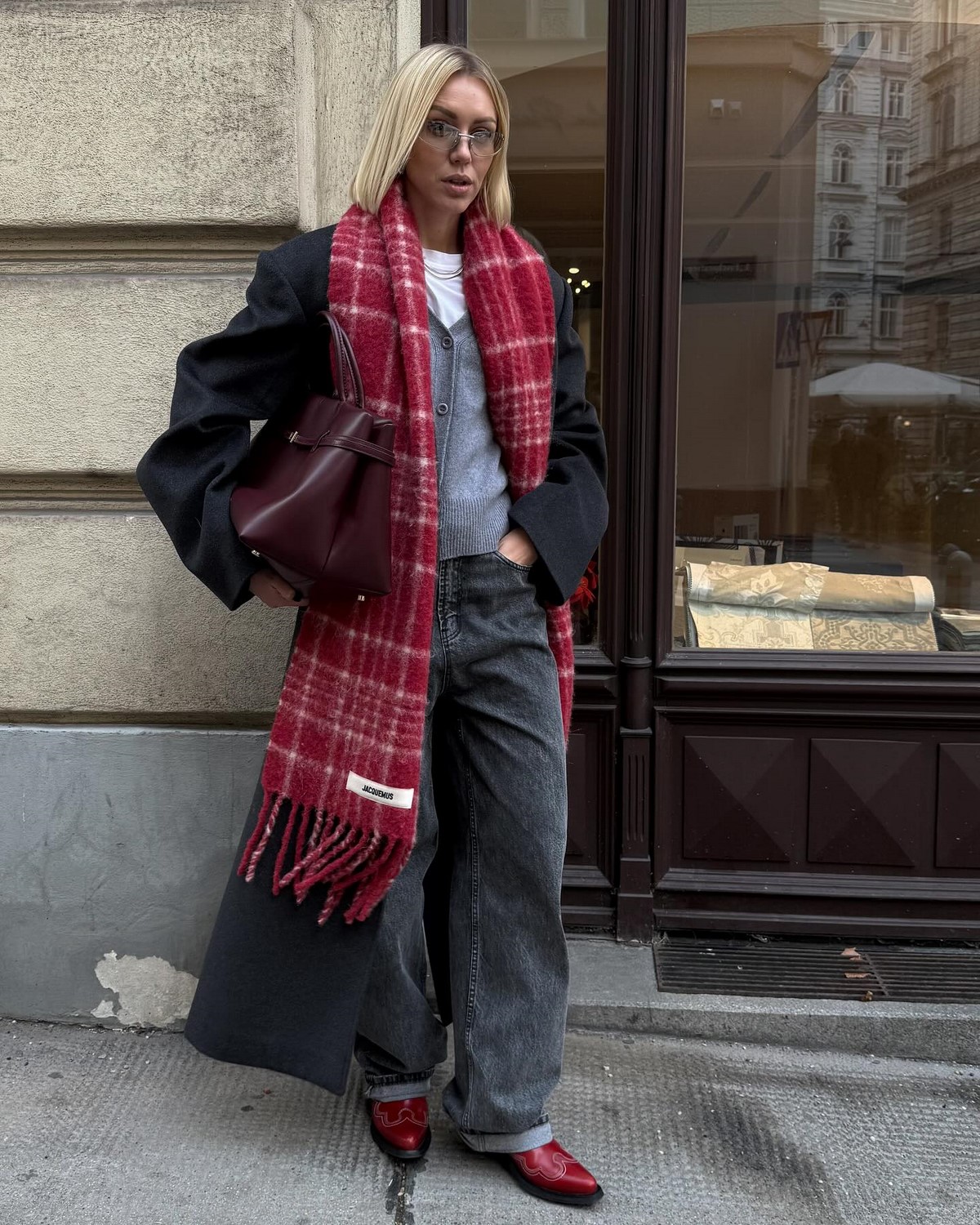 Если вы не готовы на тотал-лук, добавьте яркий акцент — шарф, сумку или обувь. Такие детали мгновенно освежают образ и подчеркивают уверенность в себе — ключевой посыл зимней моды 2025-2026.