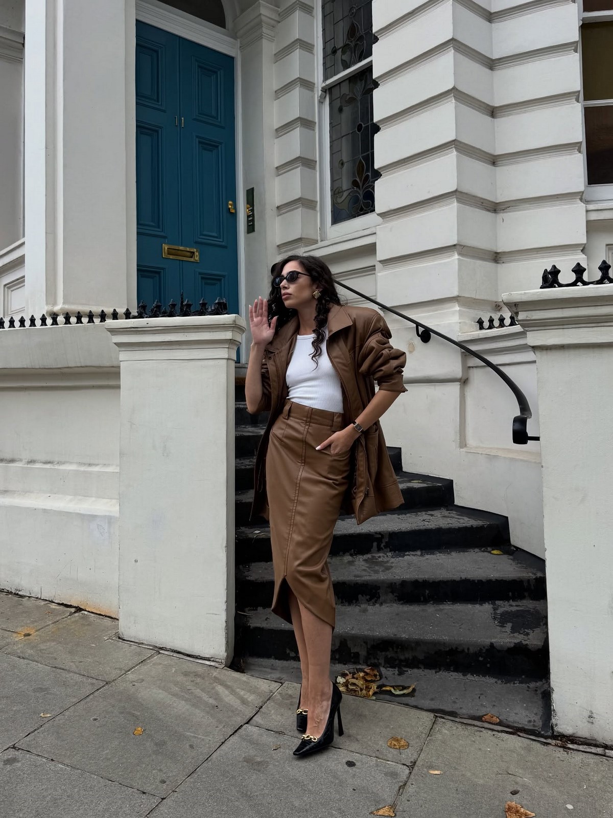 Кожаные изделия снова на пике популярности. Зимой 2025-2026 мода выходит за рамки классических курток и плащей — в тренде кожаные рубашки, брюки, пиджаки, юбки и даже корсеты.