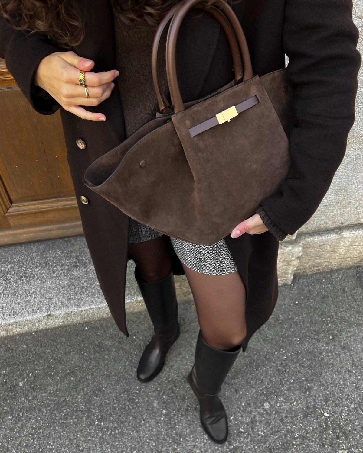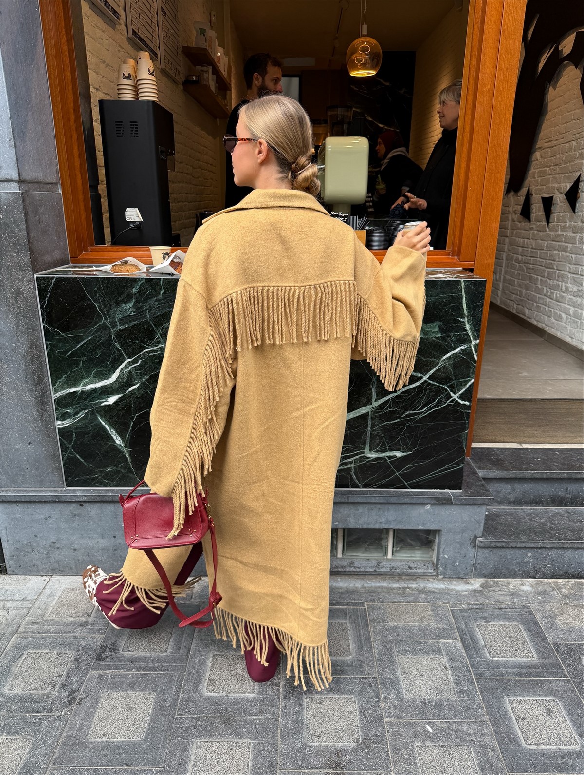 Бахрома этой зимой — не просто декор, а способ сделать образ живым. Она украшает пальто, юбки, сумки, шарфы и даже сапоги, добавляя динамики и индивидуальности.