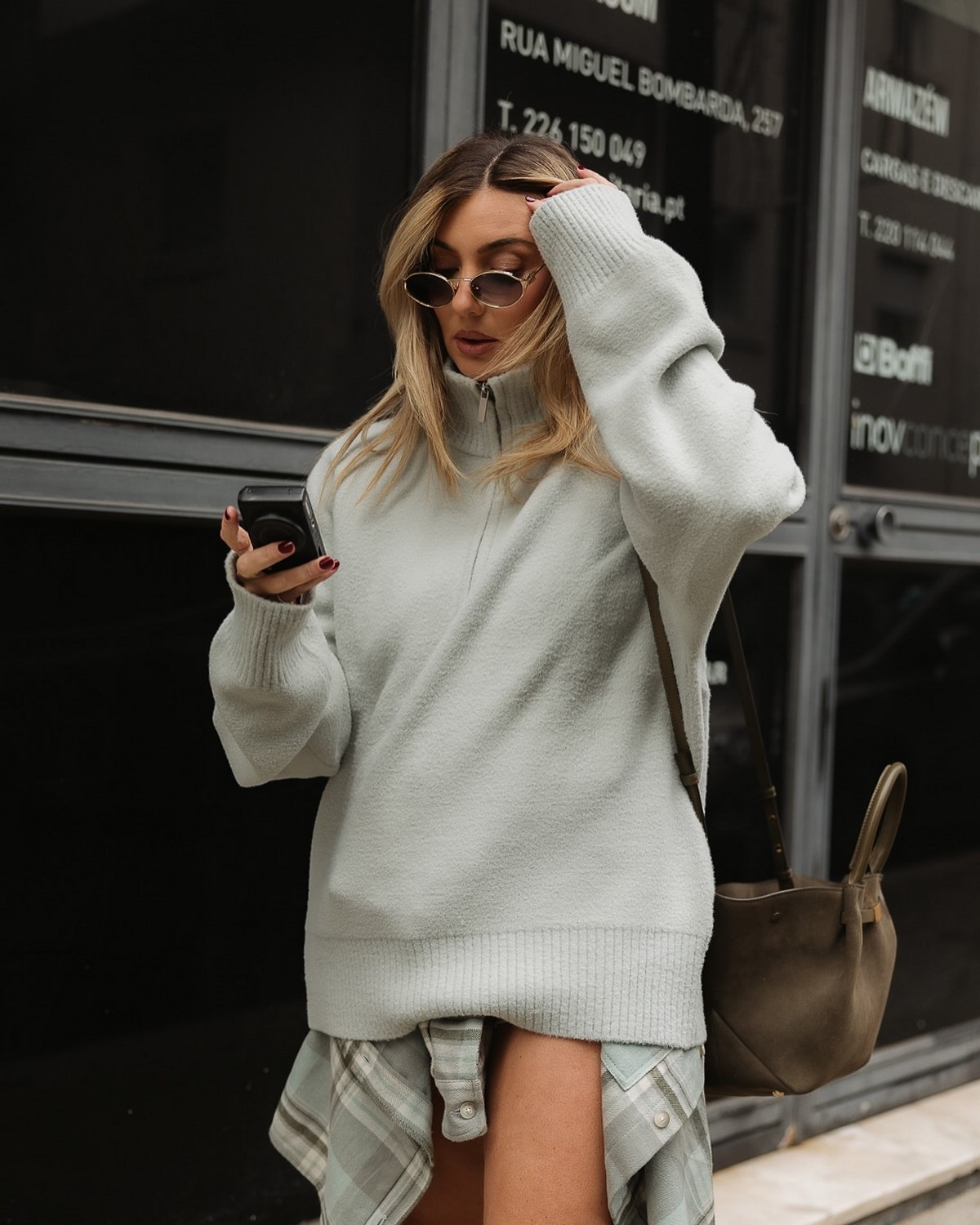 Этот элемент создает утонченный силуэт, визуально вытягивает шею и прекрасно сочетается с крупными украшениями или массивными сережками. К тому же, высокий ворот — идеальное решение для тех, кто ценит минимализм и уют в одном образе.