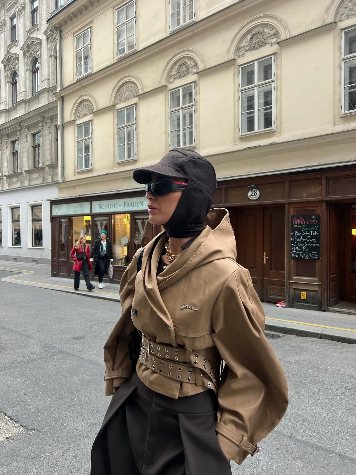 Балаклава остаётся на пике популярности благодаря сочетанию функциональности и футуризма. Её носят как отдельный элемент или под капюшон. В моду вошли модели пастельных и графитовых оттенков, а также с фактурными узорами. Этот аксессуар идеально подходит для городских образов с пуховиками и оверсайз-пальто.