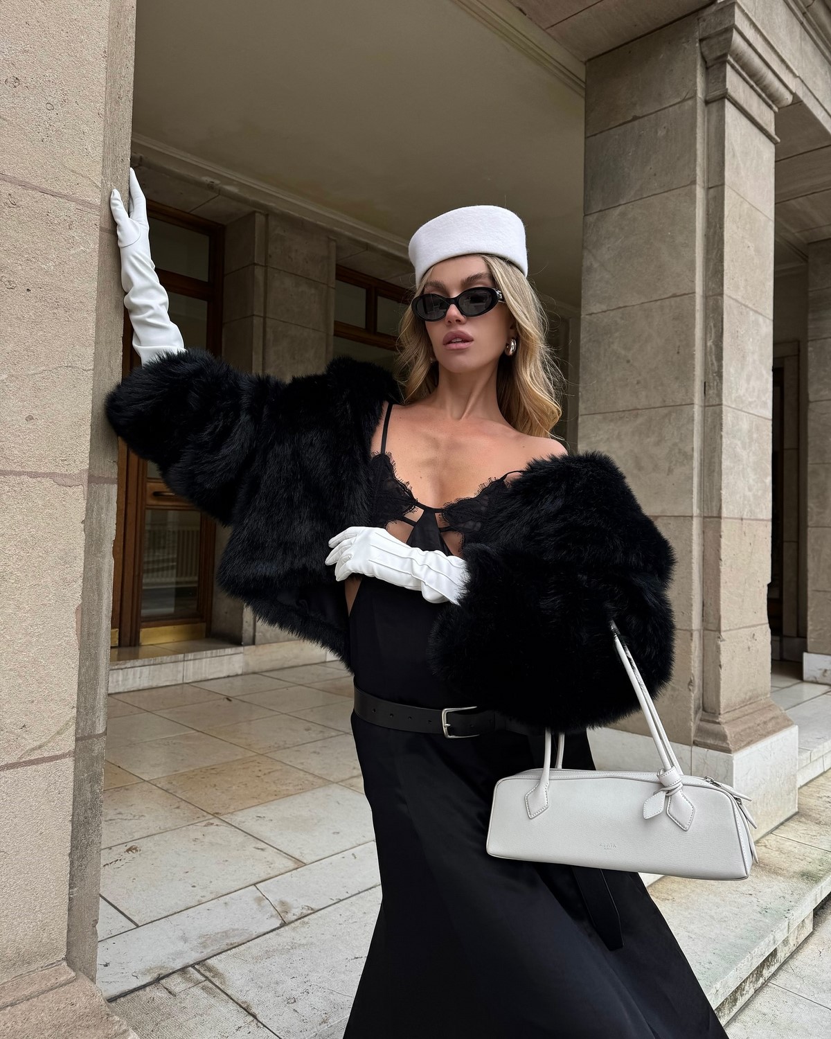 - Меховые варианты придают шику строгим костюмам и платьям.