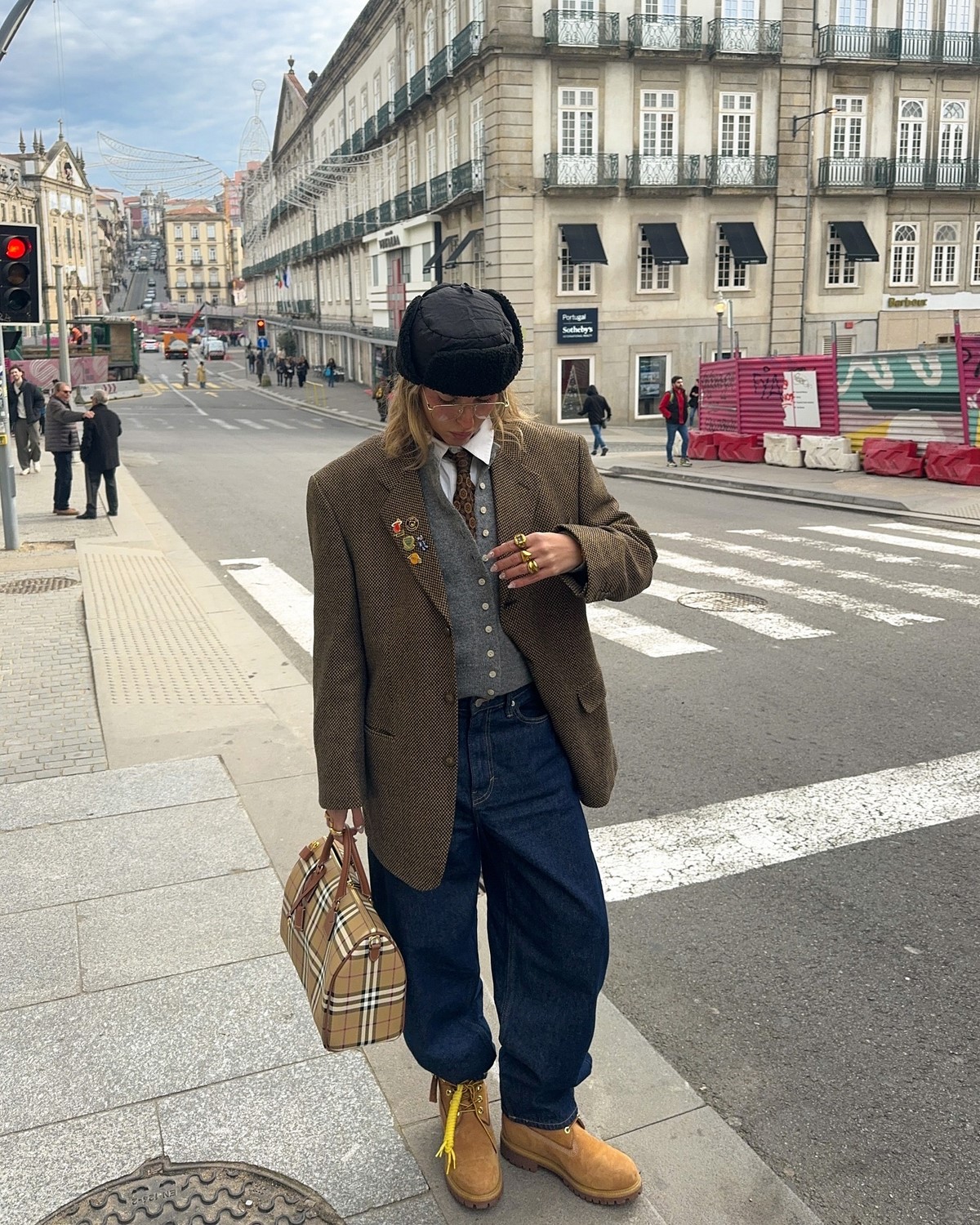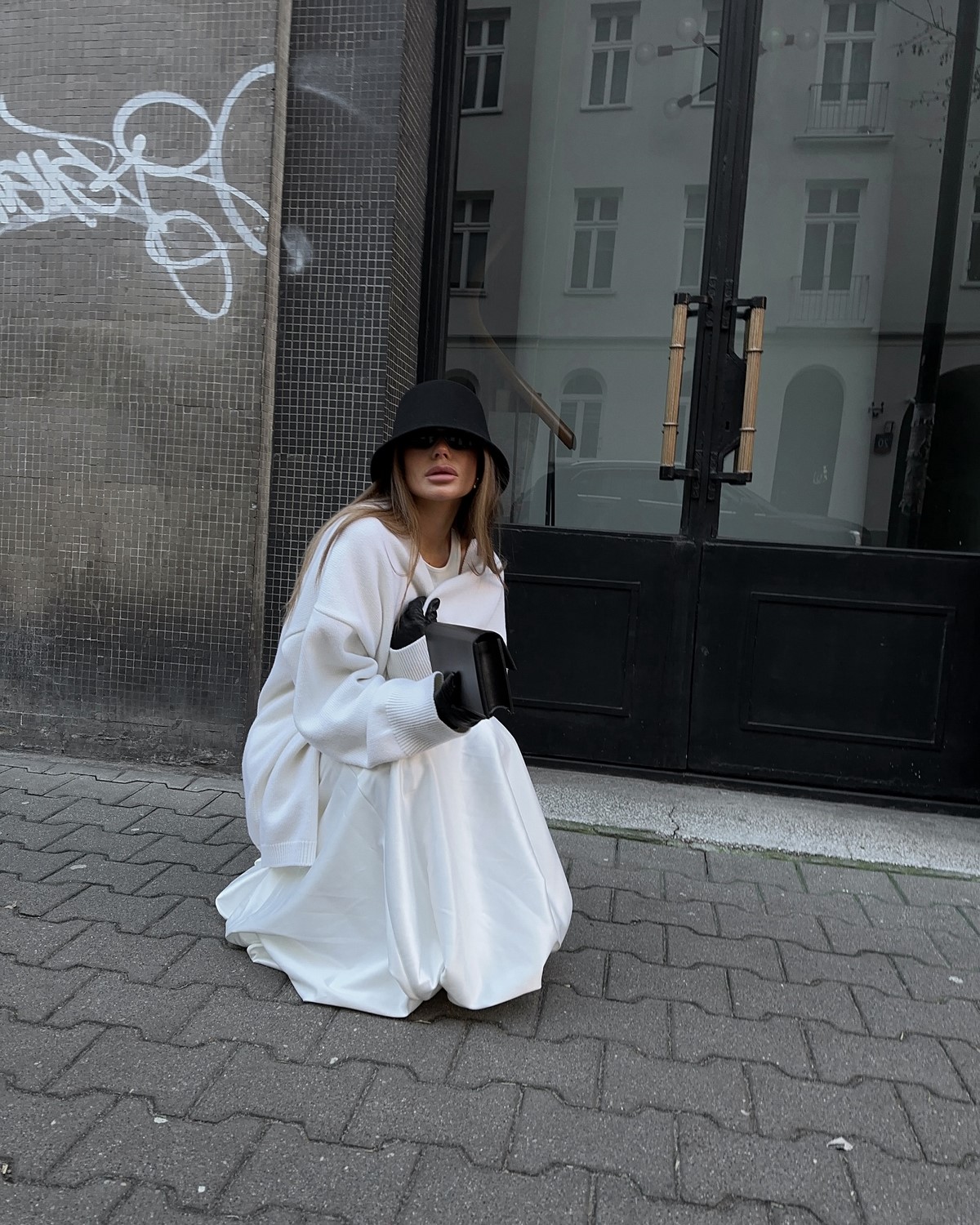 Панама, как и прошлой зимой, не теряет актуальности. В коллекциях 2025-2026 она появляется в вариантах из кожи, шерсти и меха. Этот аксессуар добавляет образу игривости и легкости. Носить её можно как с пуховиками, так и с тренчами, создавая эффект «городской непринужденности».
