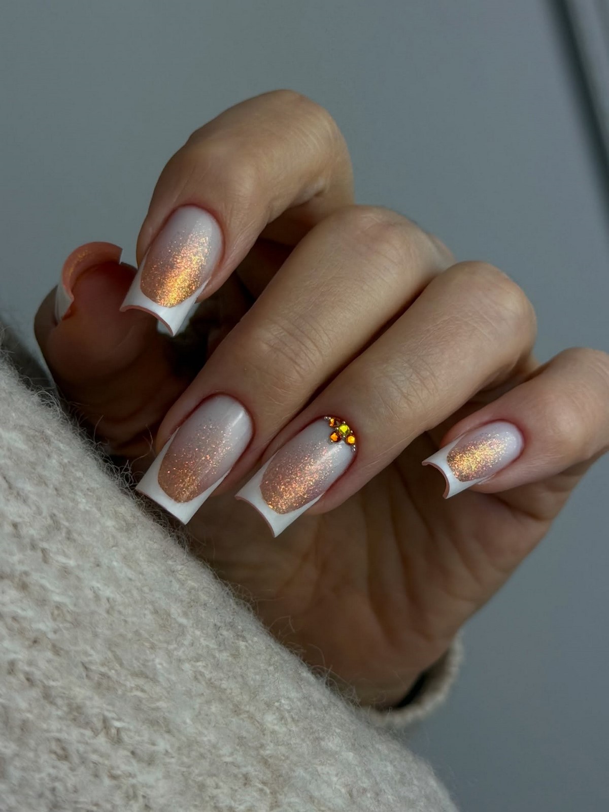 Форма ногтей — миндаль, мягкий квадрат или короткий овал. Особенно актуален микрофренч и френч с перламутровым или глянцевым финишем, который красиво отражает зимний свет.