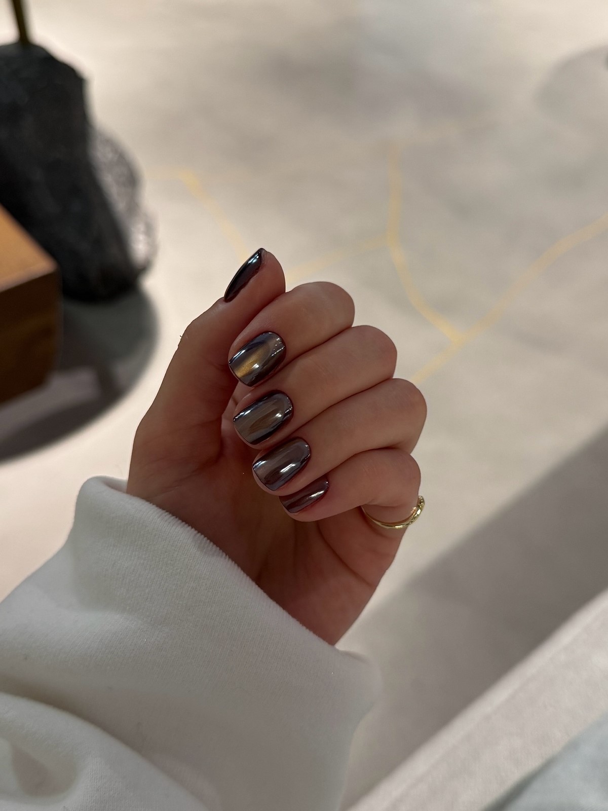 Cat Eye — один из самых эффектных трендов января 2026. Магнитные лаки с «кошачьим» бликом создают глубину цвета и переливы, которые особенно красиво смотрятся в зимнем освещении.