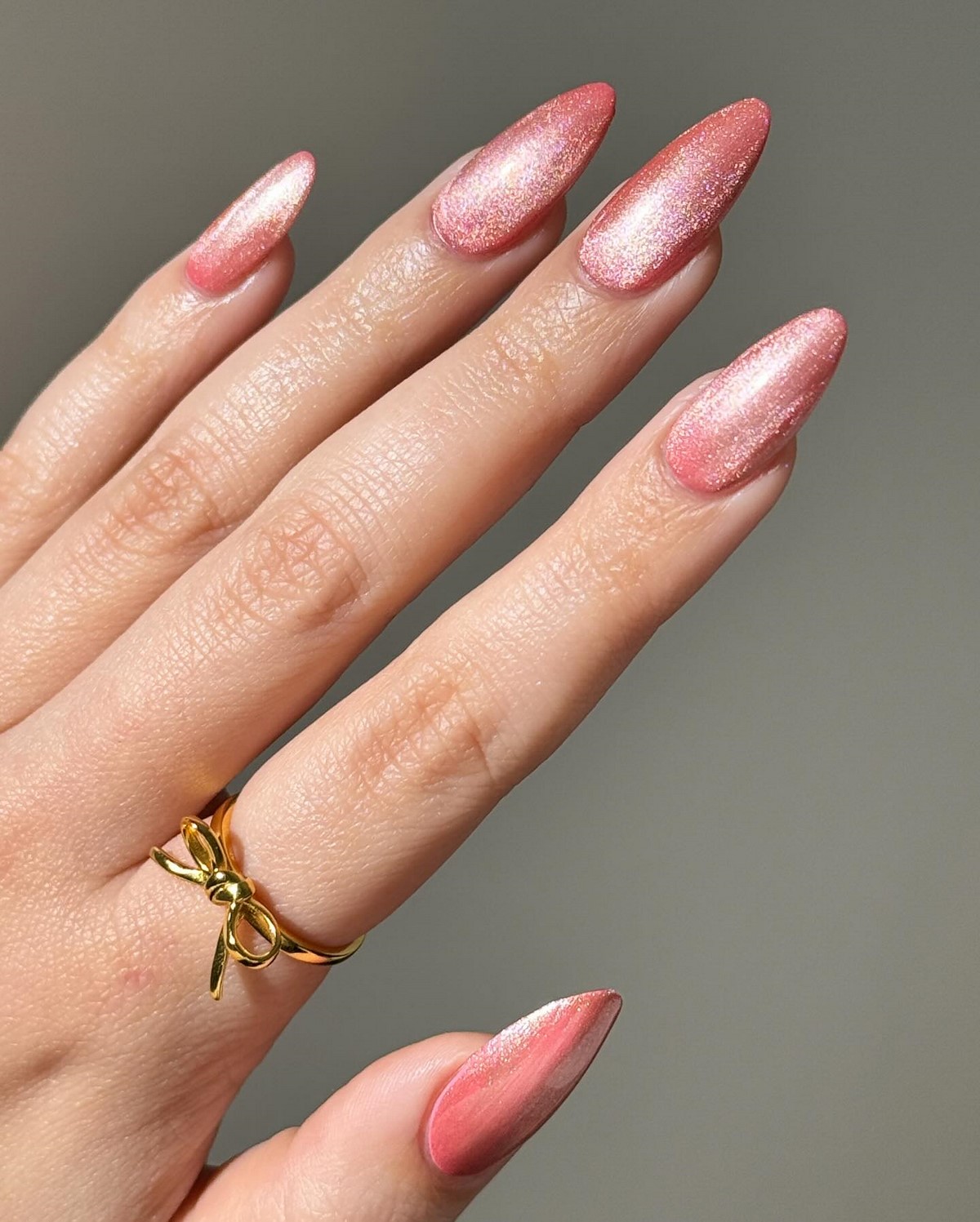 Интересно: в январе 2026 Cat Eye все чаще выполняют в мягком градиенте или с едва заметным диагональным бликом, что делает маникюр более утонченным и модным.