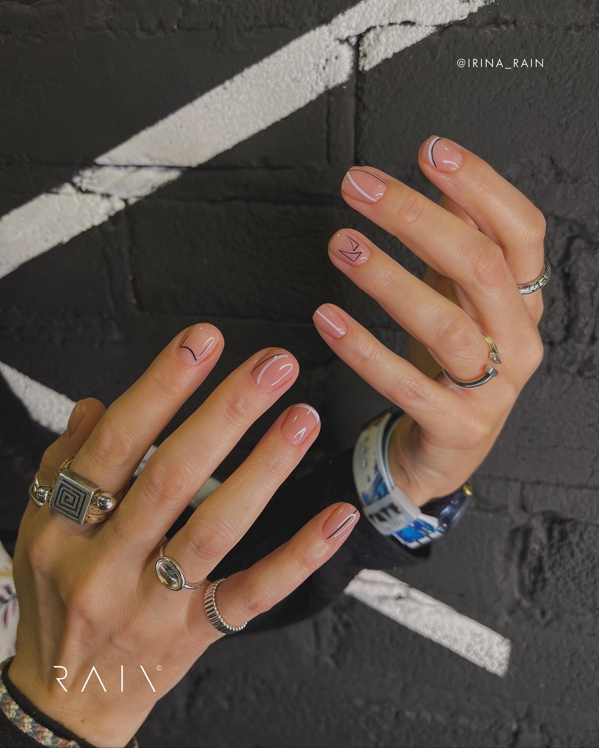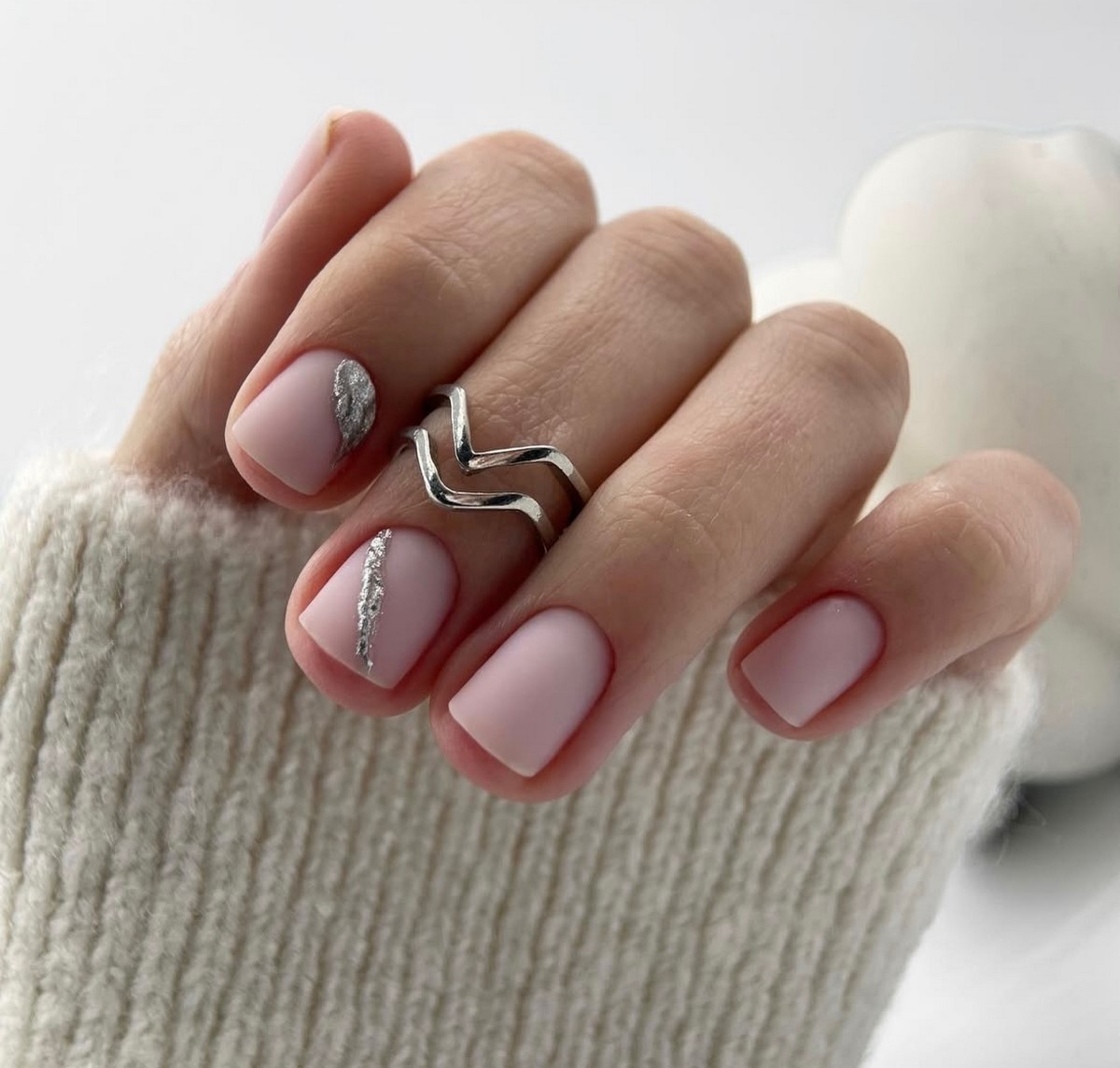 Минималистичный маникюр зимой 2026 строится вокруг простых форм и одного акцента. Это может быть тонкая линия, точка, едва заметный блеск или асимметричный элемент.