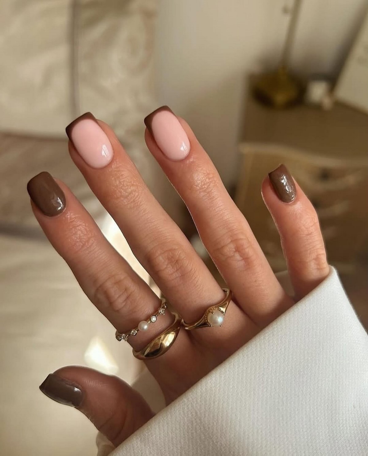 Зимой 2026 микрофренч выполняют в молочных, серых, графитовых и шоколадных оттенках. Такой дизайн не надоедает, потому что остается сдержанным и визуально легким.