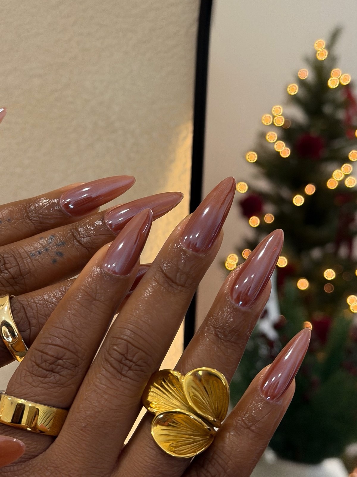 Оттенок мокко с бархатным, слегка приглушенным финишем — настоящий must-have зимы 2026. Он создает ощущение тепла, уюта и статусной сдержанности. Бархатный эффект подчеркивает глубину цвета и идеально сочетается с зимними тканями — кашемиром, шерстью, твидом.