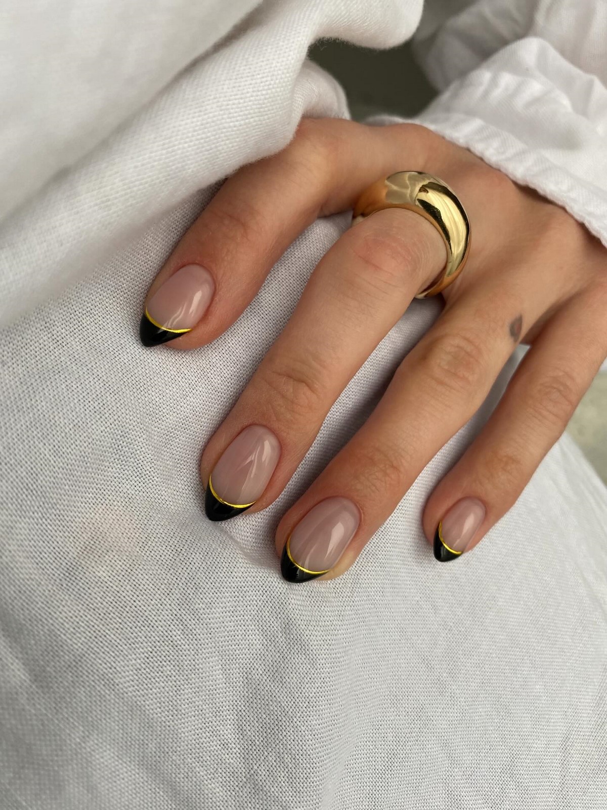 Минималистичный маникюр с золотыми полосками и точками становится одним из ключевых направлений сезона. Такие элементы добавляют образу изысканности, не перегружая дизайн и не отвлекая внимание от общего стиля.