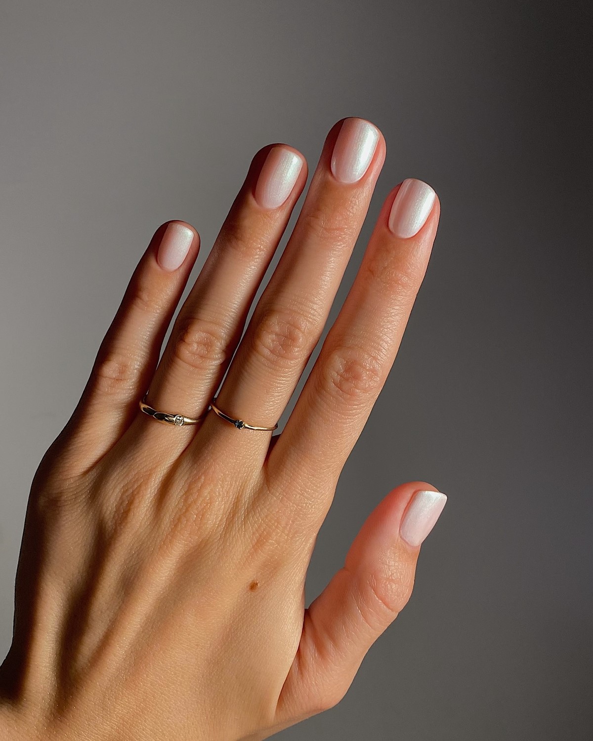 В феврале 2026 особенно популярны холодные переливы с серебристым и перламутровым подтоном. Такой маникюр выглядит свежо даже при минимальном освещении.