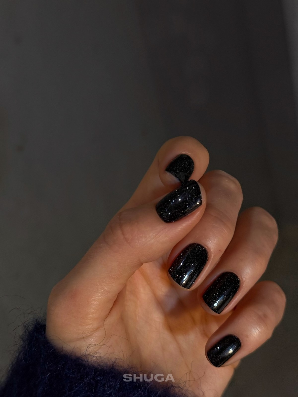 Сияющий черный маникюр становится одним из главных фаворитов февраля. Мелкий шиммер, перламутровый эффект или легкое рассеянное свечение делают темный цвет более живым и многогранным.