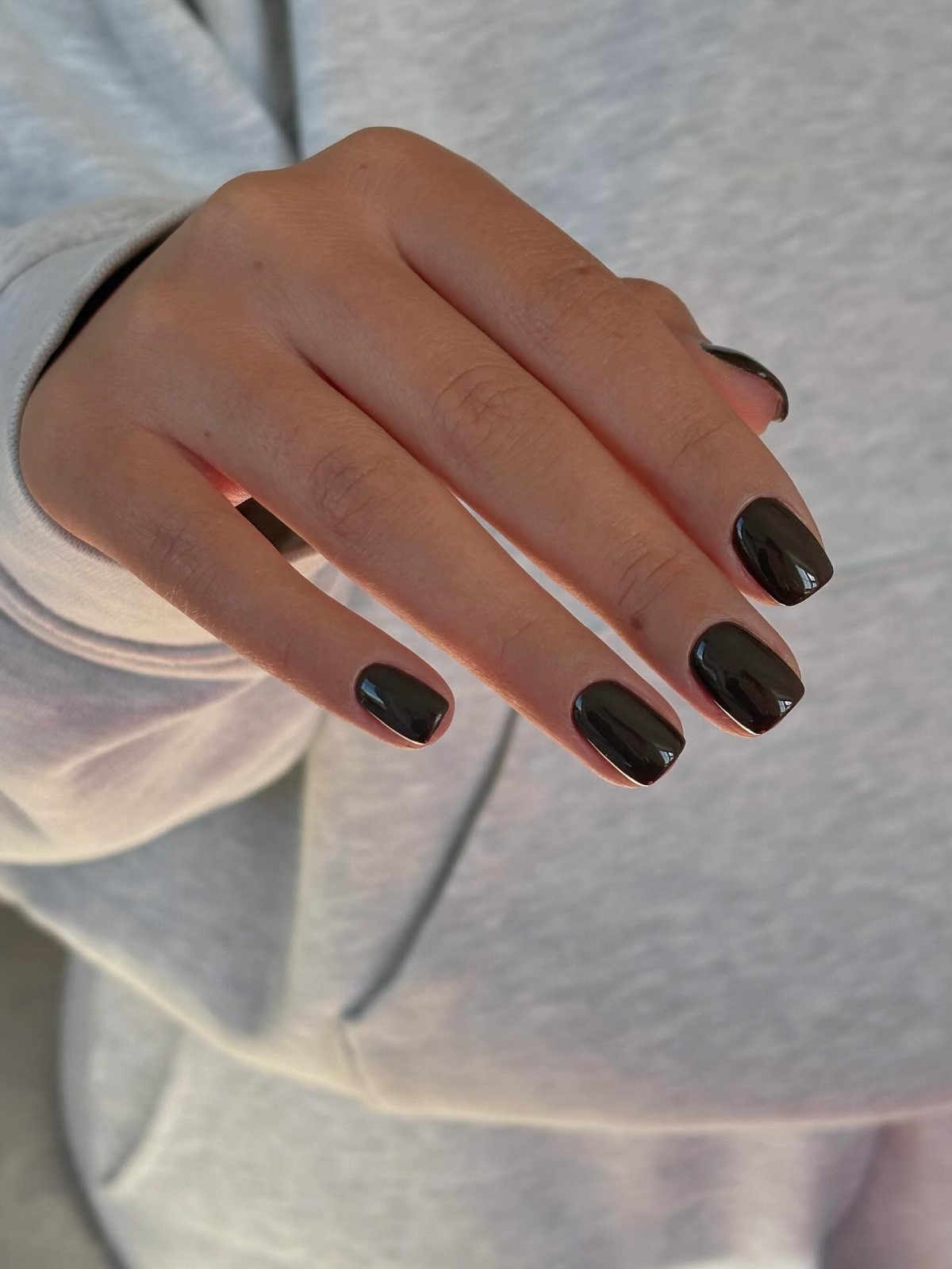 АКТУАЛЬНО: Черный маникюр на короткие ногти в феврале особенно выигрышно смотрится с мягкими квадратными или округлыми формами. Они визуально делают руки аккуратнее и подчеркивают современный стиль.