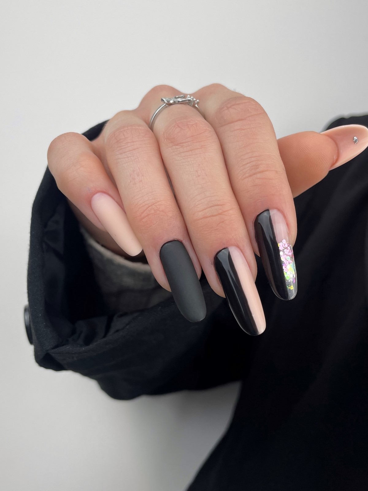 РЕКОМЕНДУЕМ: Если хочется сделать металлический черный маникюр более универсальным, используйте акцент только на одном ногте. Это сохранит баланс и позволит дизайну легко вписаться в повседневный стиль.