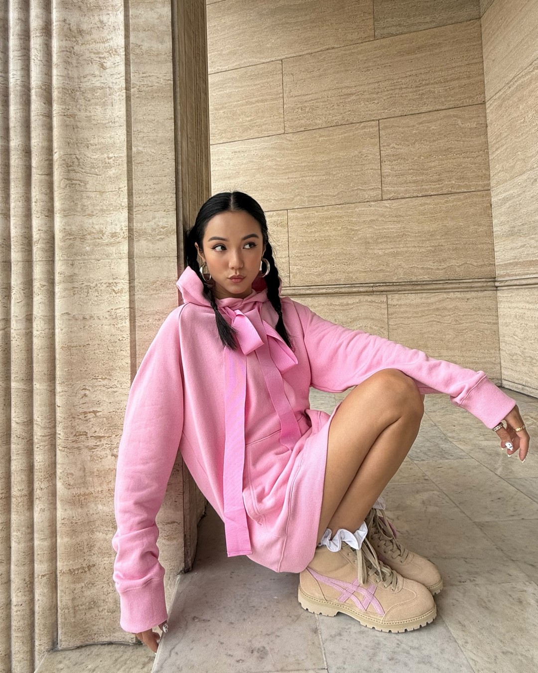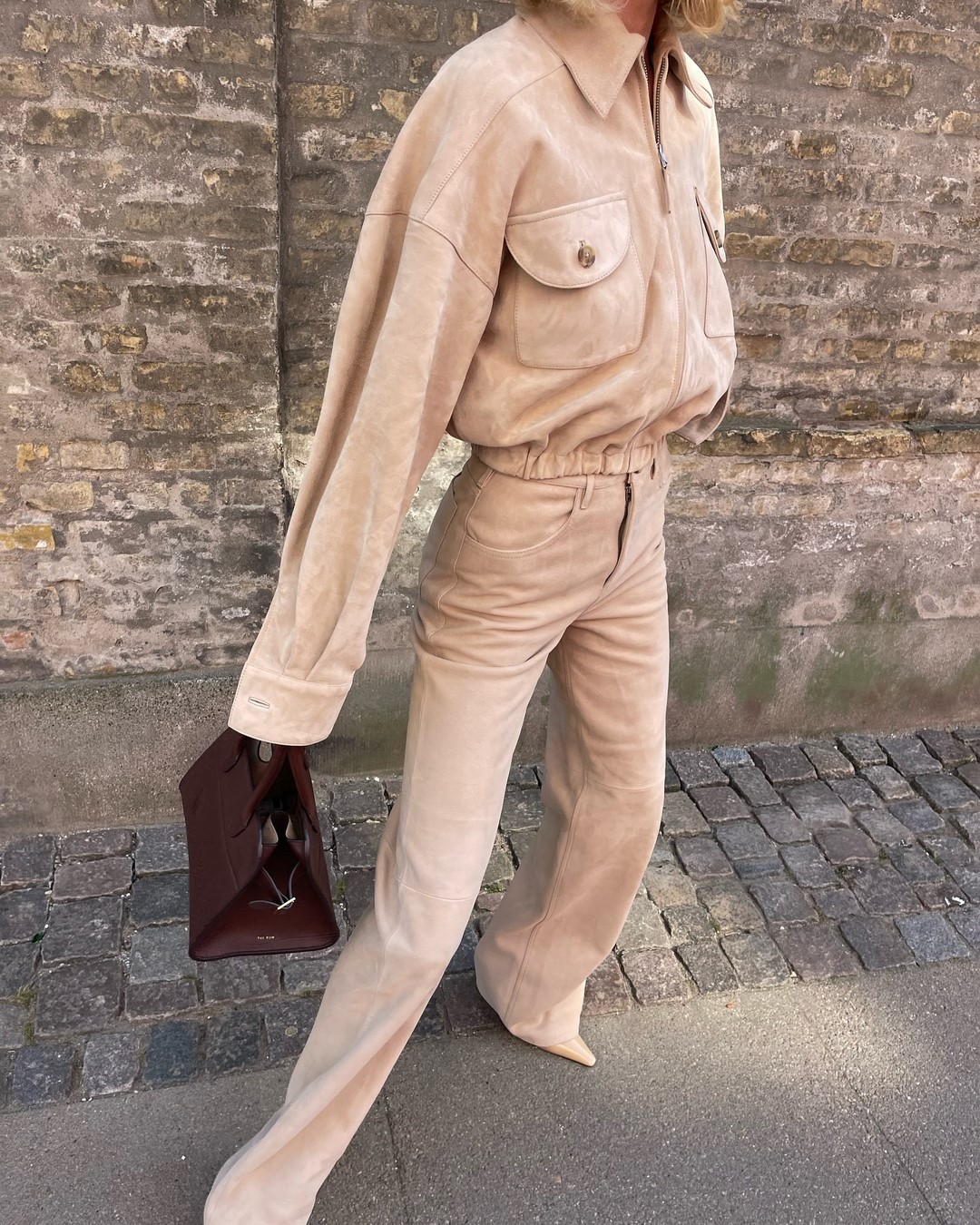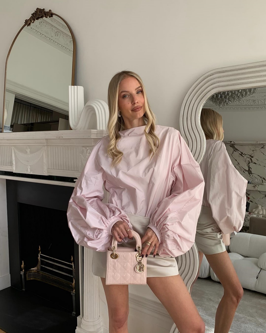 Розовый – главный романтичный цвет весны, который в 2025 году представлен в палитре от пастельного до насыщенного фуксии. Он идеально впишется в элегантные образы: например, костюм в нежном розовом оттенке или летящее платье цвета пудры. Для смелых образов можно выбрать кожаную куртку в оттенке bubblegum или яркие розовые брюки в сочетании с нейтральным верхом. Особенно эффектно розовый сочетается с серым, шоколадным и винным цветами.