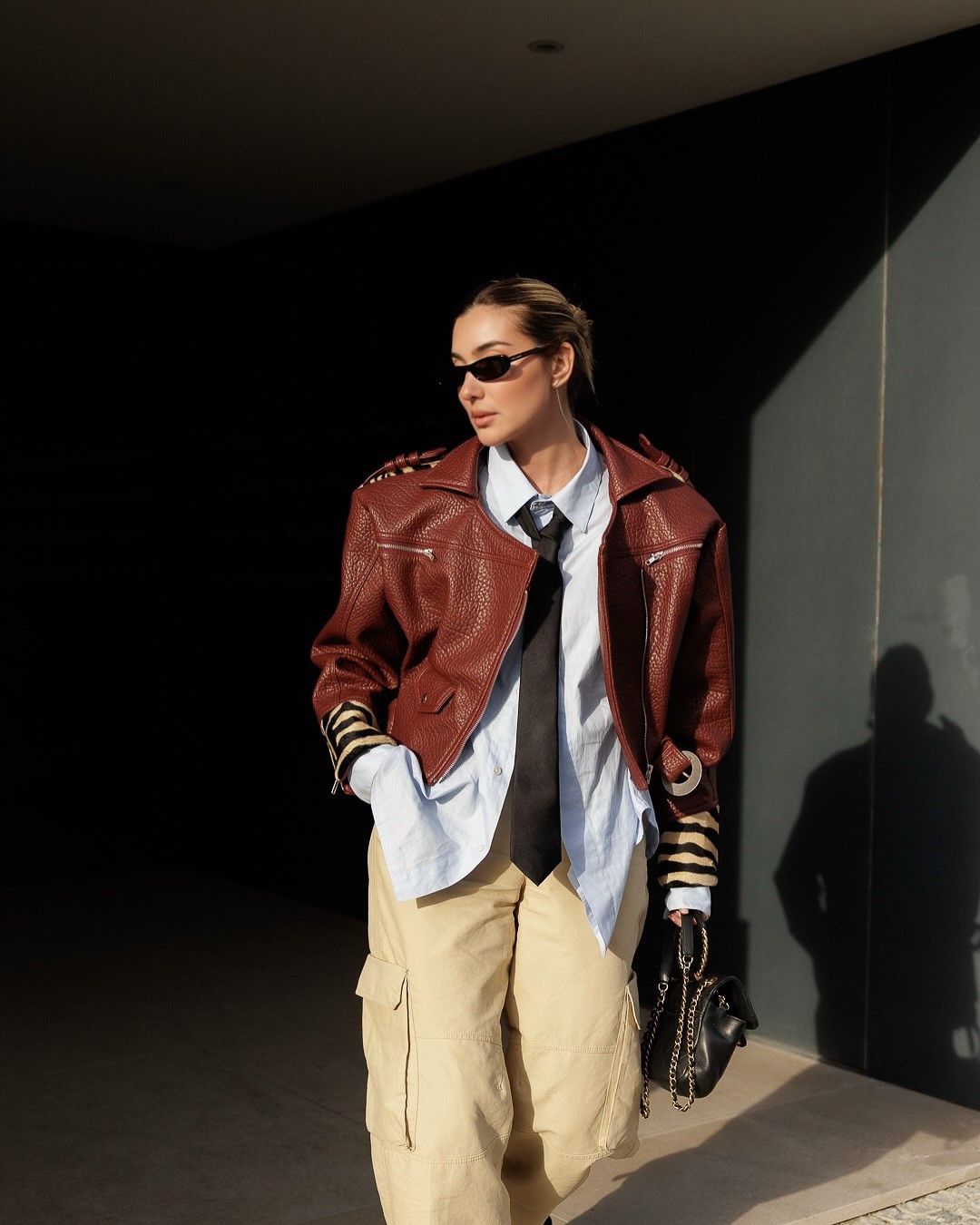 Весной 2025 кожаные куртки становятся главным элементом гардероба, особенно модели в стиле оверсайз, укороченные и с поясом. В моде яркие цвета – красный, синий, шоколадный, а также классический черный. Актуальны варианты с необычными текстурами, металлическими элементами и ремнями. Кожаная куртка идеально сочетается с романтичными платьями, брюками-карго и юбками макси.