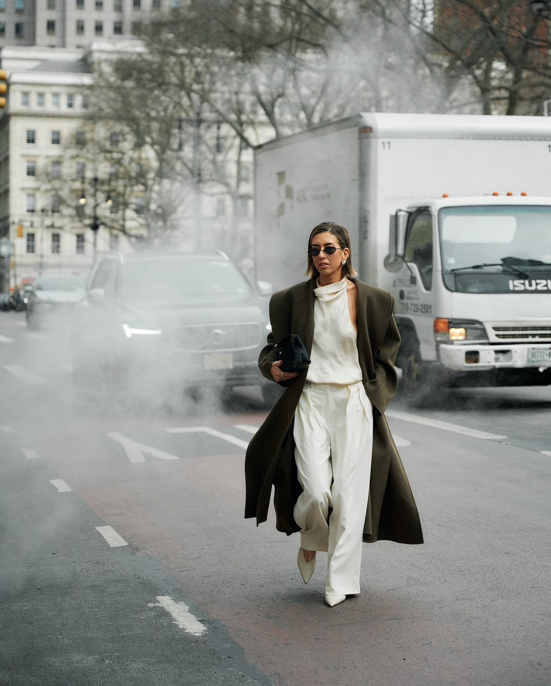 - Силуэты: акцентированные плечи, приталенные модели, oversize и многослойность.
