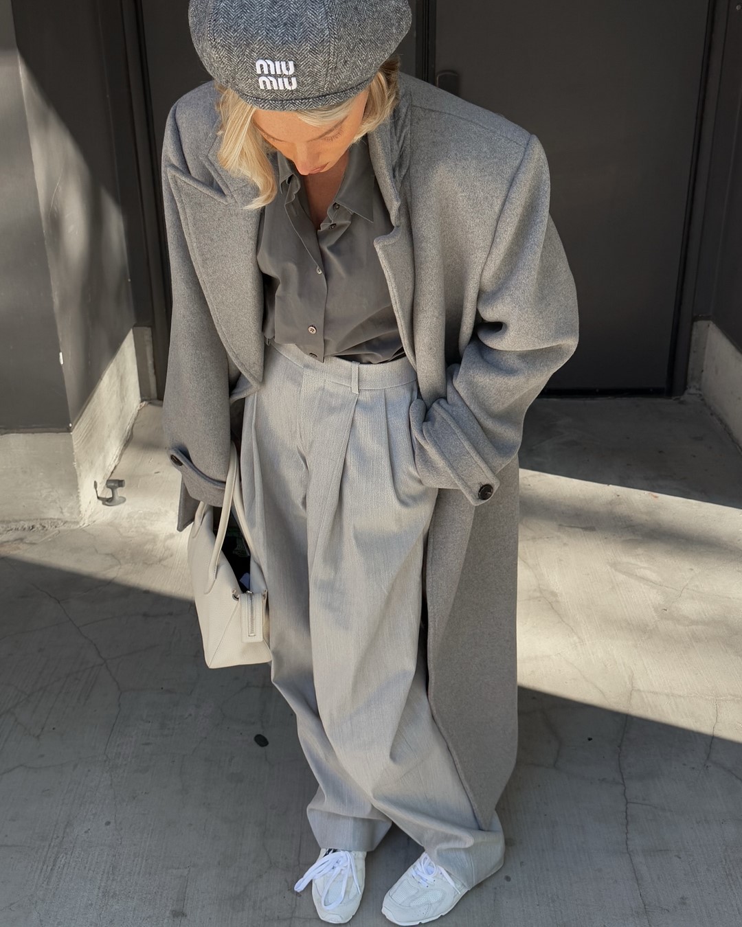 Серый – это классика, которая весной 2025 приобретает многослойность и разнообразие текстур. В тренде костюмы-оверсайз, трикотажные платья и длинные пальто в светло-серых и графитовых оттенках. Для расслабленного образа можно выбрать серые широкие брюки, базовый лонгслив и кроссовки. Серый идеально комбинируется с молочным, розовым и голубым, создавая утонченные весенние аутфиты.