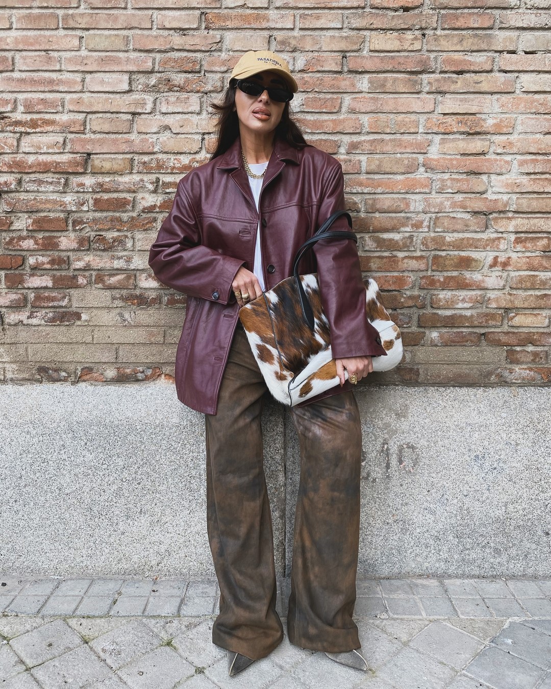Весной 2025 актуальны широкие и расклешенные брюки, брюки-палаццо, а также модели с завышенной талией. Кожаные брюки, особенно в шоколадных и винных оттенках, придадут образу дерзость и элегантность. В офисном стиле популярны классические серые и белые брюки прямого кроя. Для расслабленных аутфитов можно выбрать мягкие трикотажные брюки или карго.