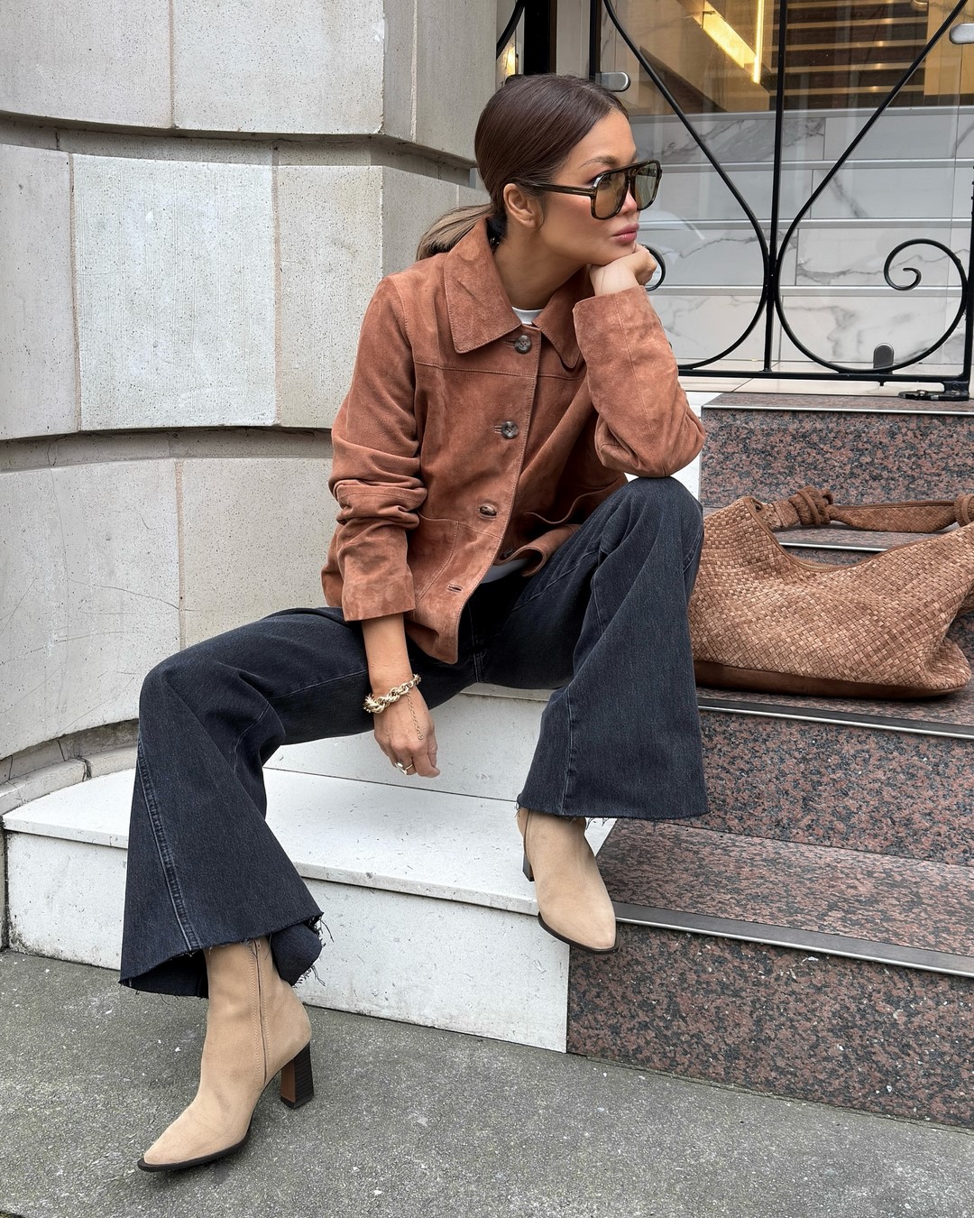 - Аксессуары: сумка среднего размера, солнечные очки и изящные украшения.