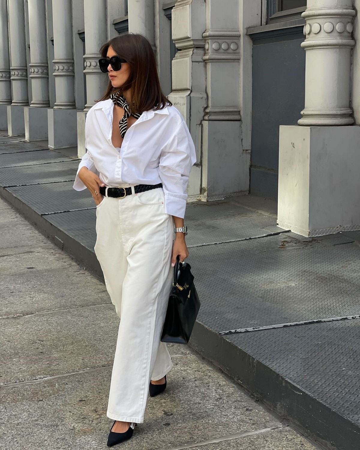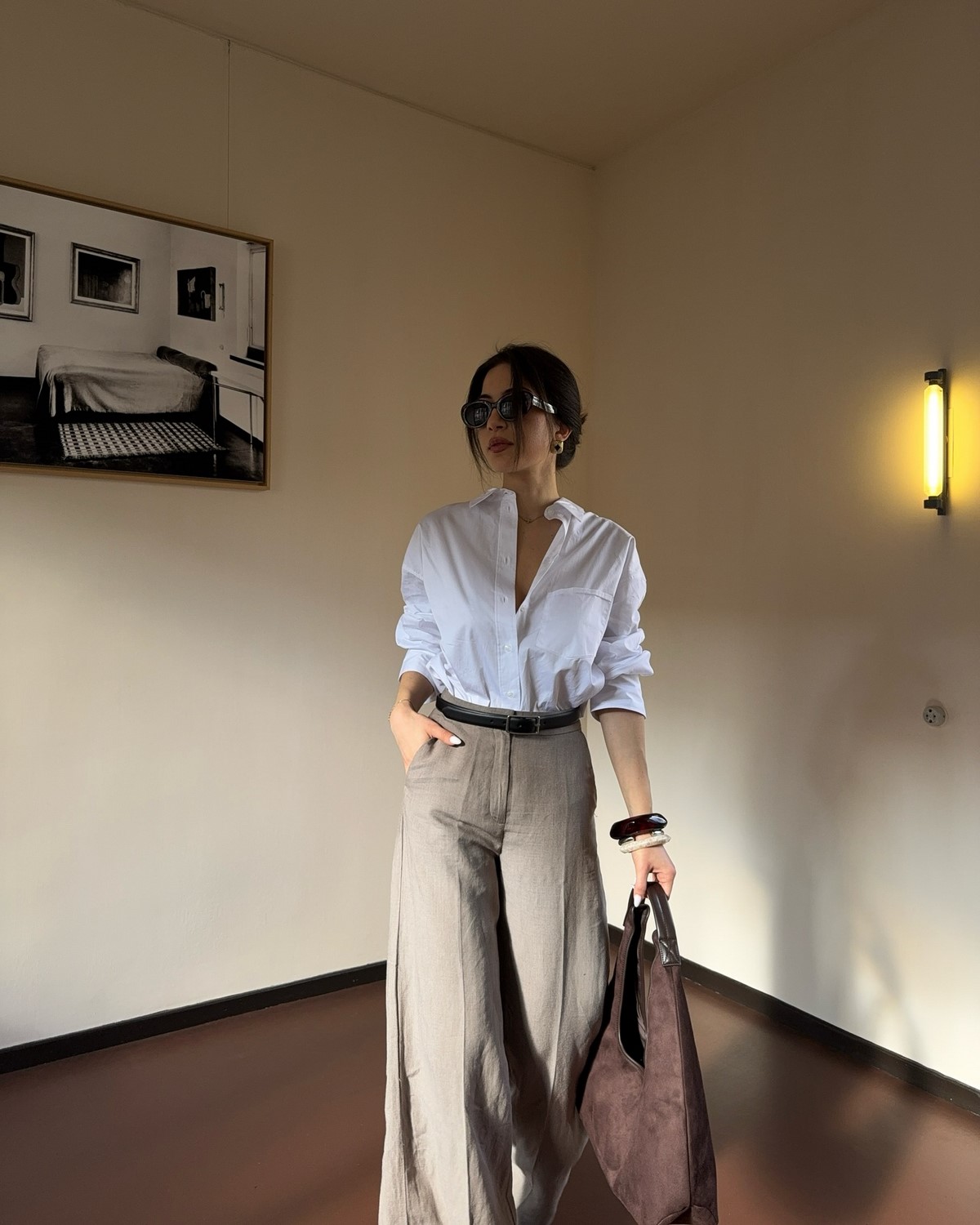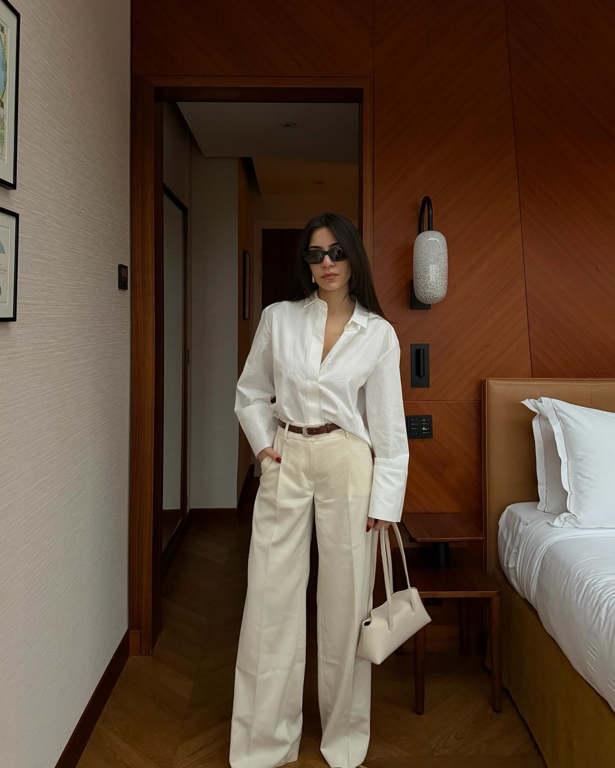 Белая рубашка в 2025 году переживает очередное обновление. Дизайнеры экспериментируют с кроем, добавляя асимметрию, необычные воротники или декоративные элементы. Актуальны как классические модели из хлопка, так и более свободные варианты из льна или смесовых тканей. Белая рубашка продолжает оставаться основой капсульного гардероба.