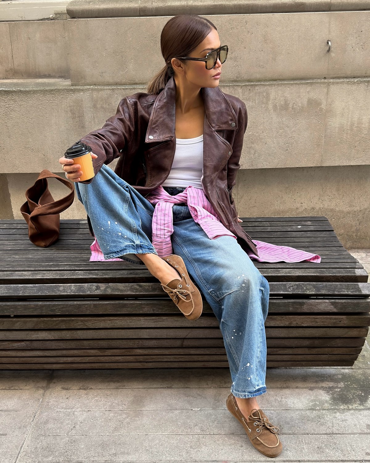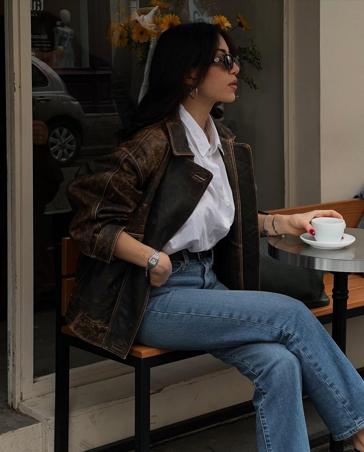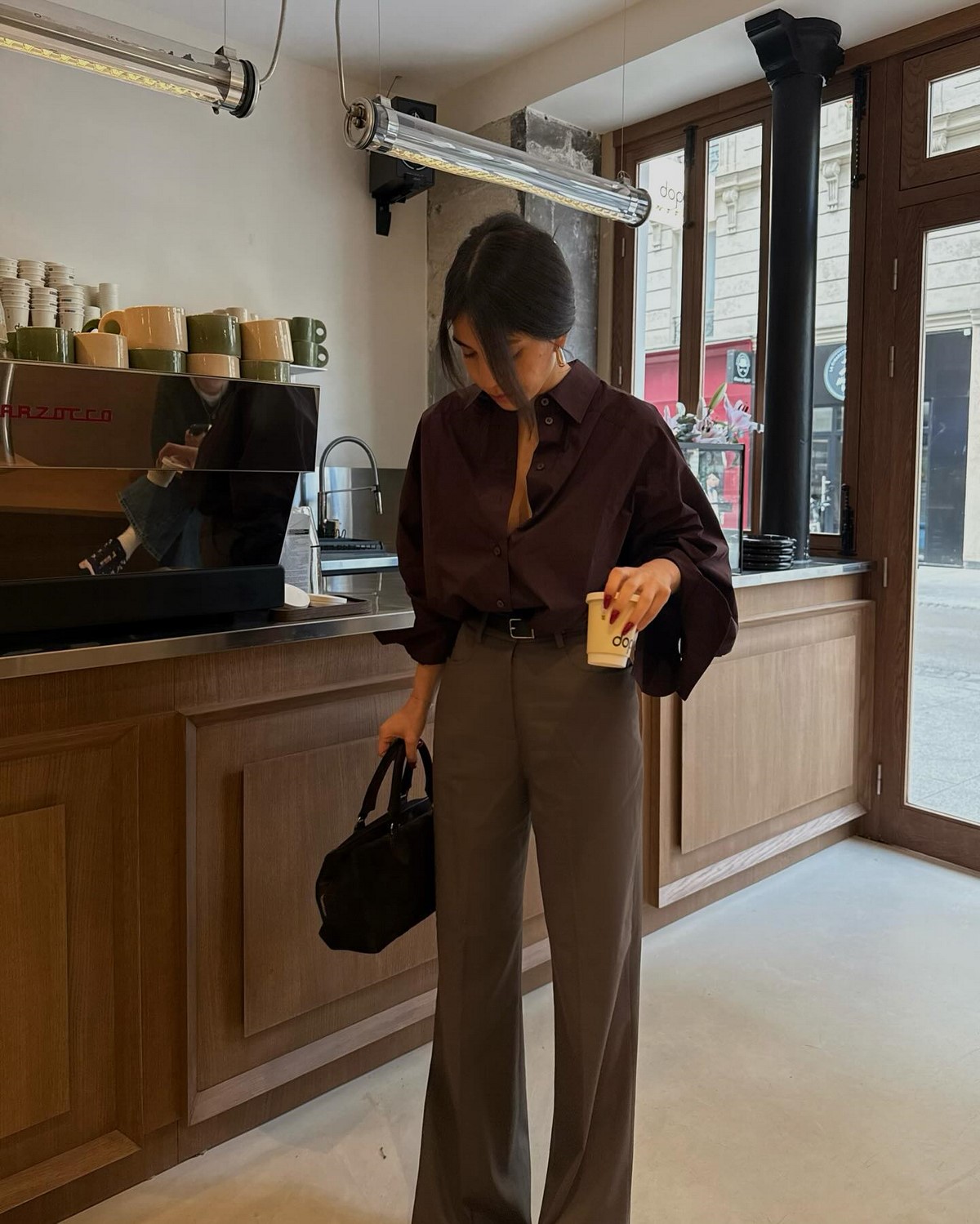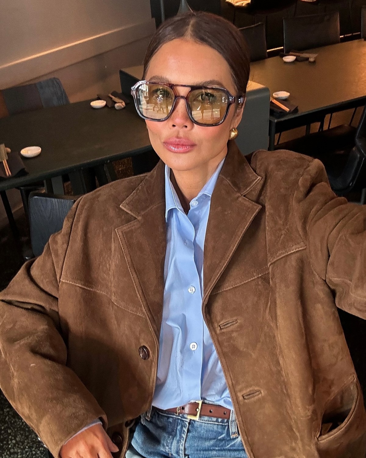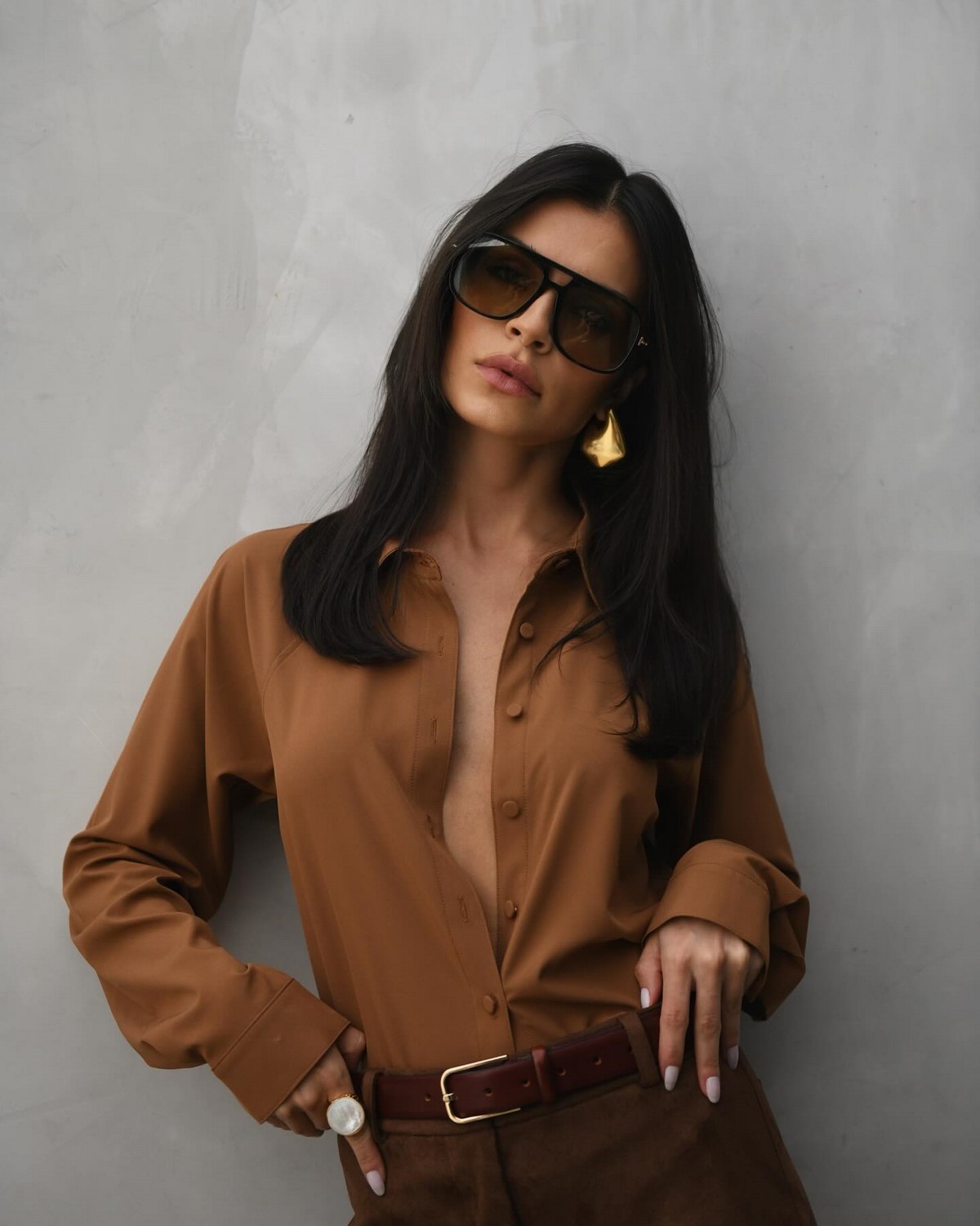 Замшевые рубашки – неожиданный тренд 2025 года. Они представлены преимущественно в оттенках коричневого, бежевого и терракотового. Эти модели идеальны для прохладной погоды и придают образу особую текстуру. Стилисты рекомендуют носить их нараспашку поверх базовых вещей или сочетать с кожаными брюками для создания эффектного тотал-лука.