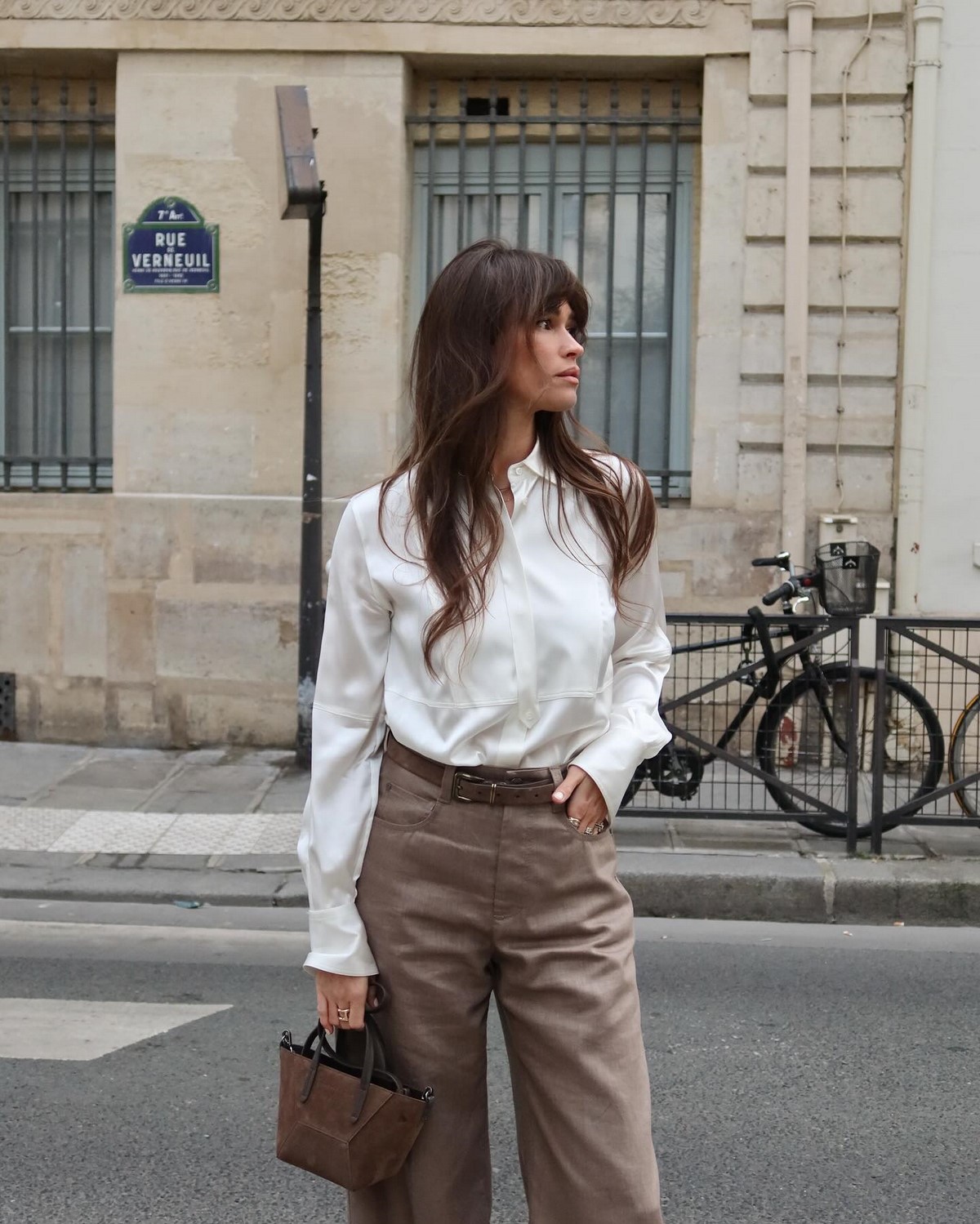 Шелковые рубашки символизируют роскошь и комфорт. В 2025 году они представлены как в классических, так и в свободных силуэтах. Струящаяся фактура добавляет образу элегантности и утонченности. Шелковые модели идеальны для вечерних выходов в сочетании с брюками или юбкой-карандаш, а также прекрасно смотрятся с джинсами в стиле смарт-кэжуал.