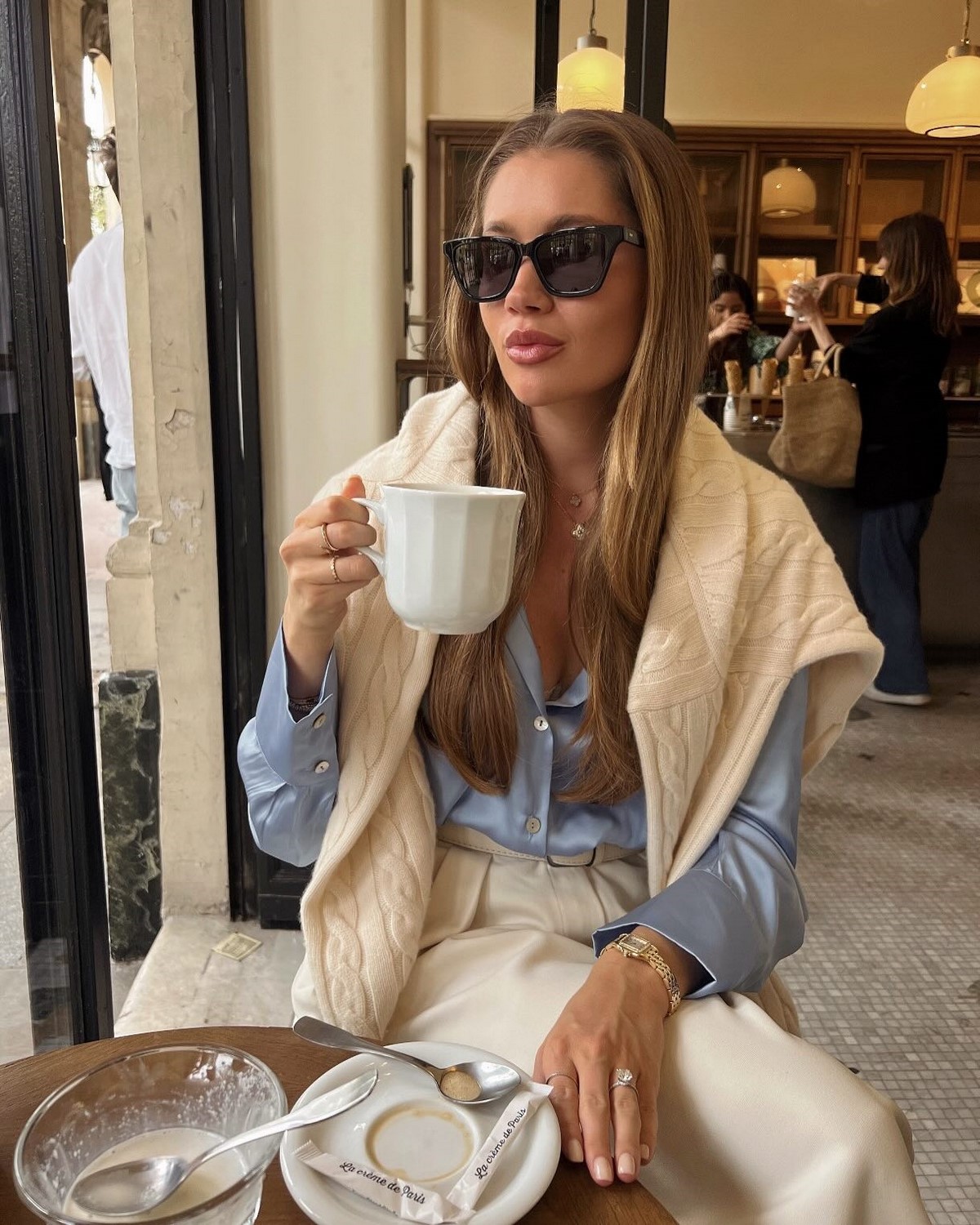 Голубая рубашка стала настоящим символом 2025 года. Этот универсальный оттенок одинаково хорошо смотрится в деловых и повседневных образах. Дизайнеры предлагают модели разной интенсивности – от нежно-небесного до насыщенного джинсового. Такая рубашка идеально сочетается с белыми брюками, бежевыми юбками и деловыми костюмами нейтральных тонов.
