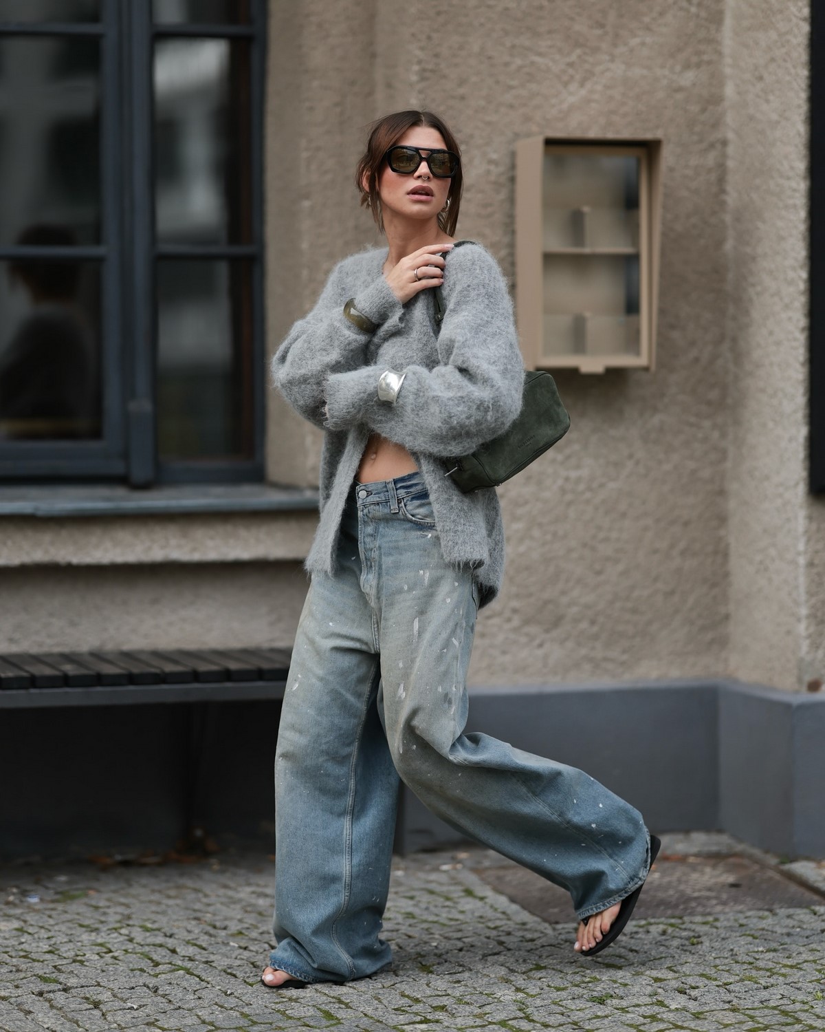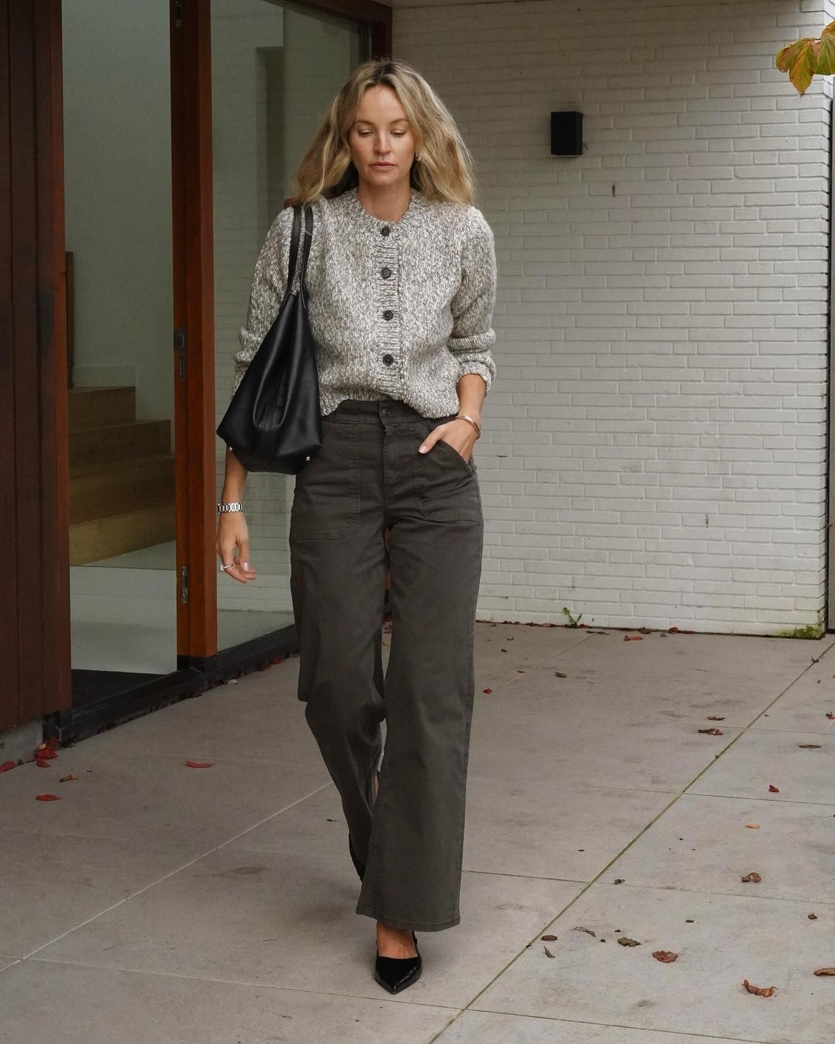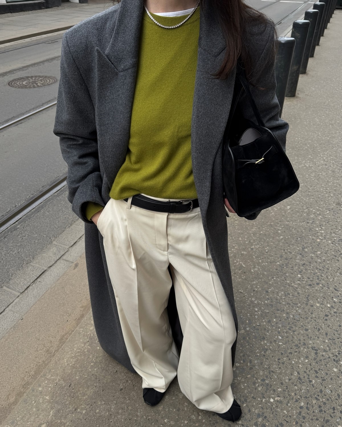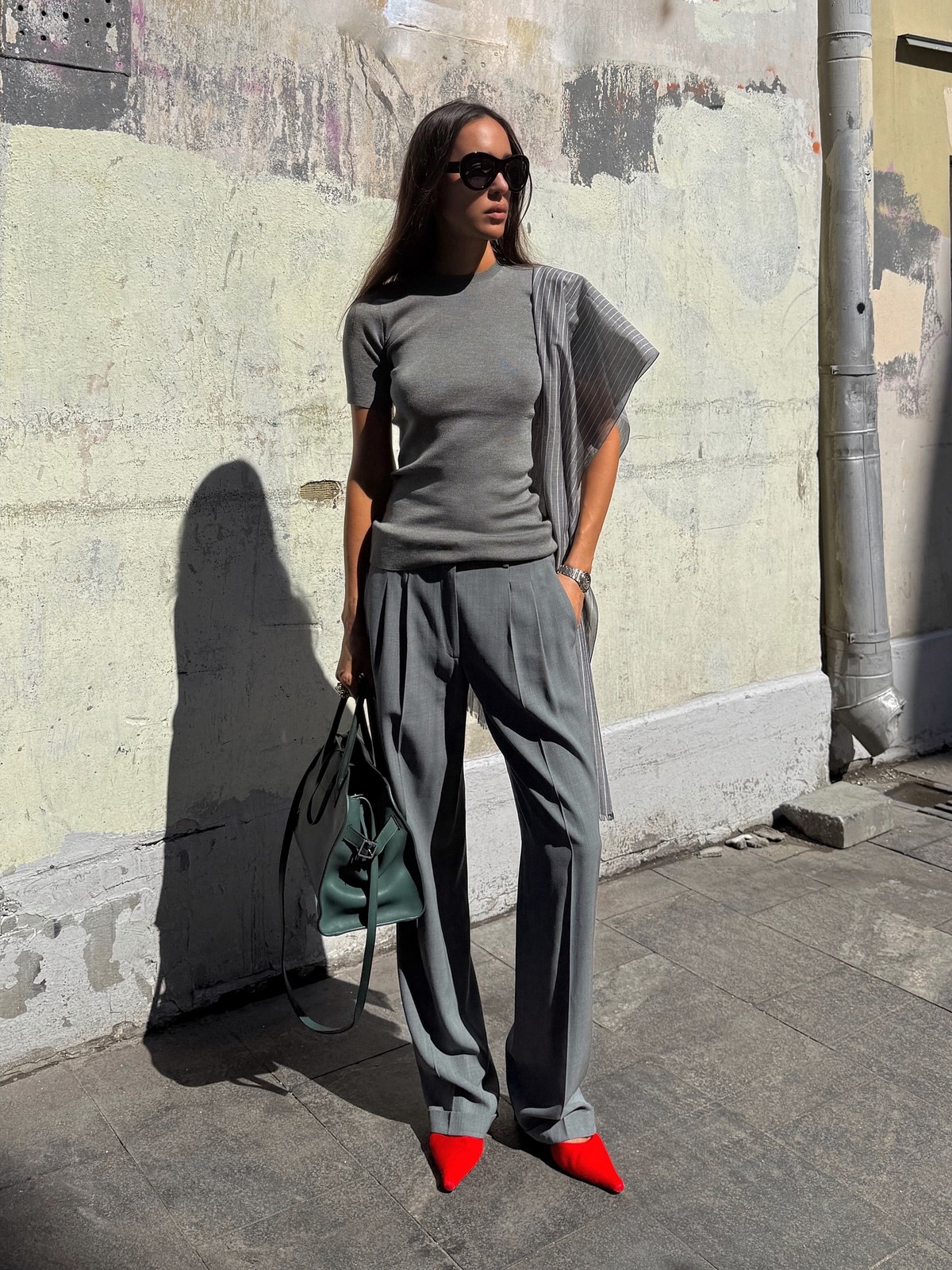 Серый цвет во всех его проявлениях – от светло-серого до антрацитового – стал базой для создания элегантных осенних образов. Этот универсальный оттенок прекрасно сочетается практически с любыми цветами, создавая как строгие деловые, так и casual луки. Серые брюки могут быть выполнены в различных фактурах – от шерстяных костюмных до денимовых и трикотажных. Они служат идеальным фоном для ярких аксессуаров и цветных верхов.