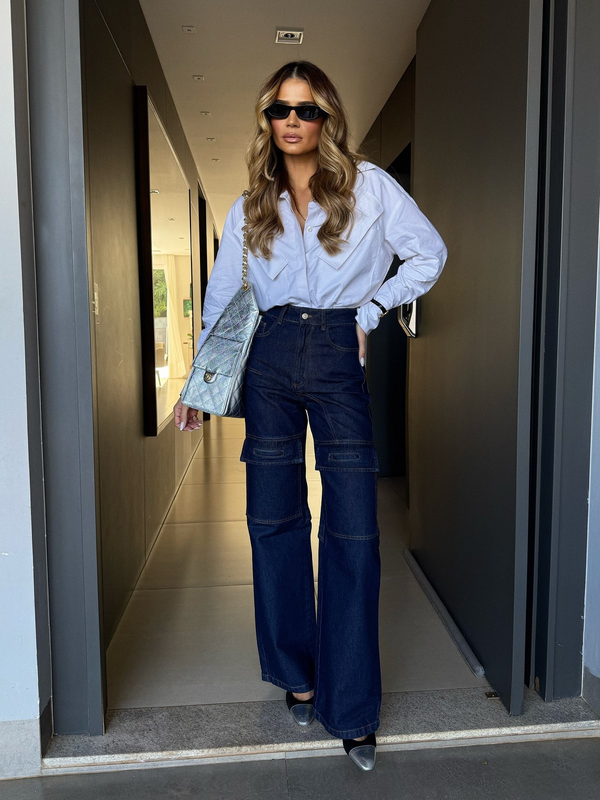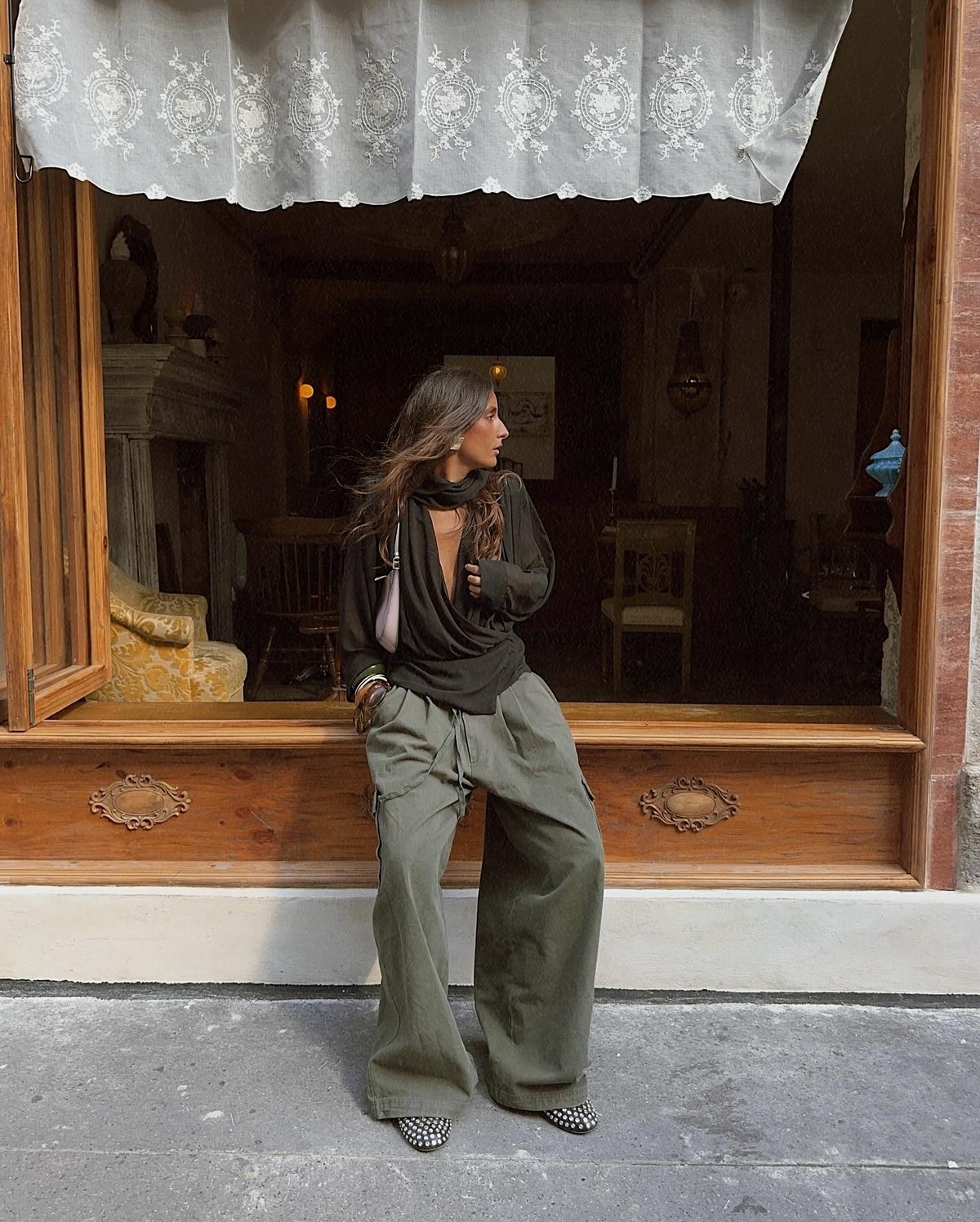 Силуэты варьируются от ультрашироких парашютов до облегающих моделей с низкой посадкой. Особенно актуальны оверсайз-модели, которые балансируют с приталенными верхами, и гибридные решения типа брюки-юбка.