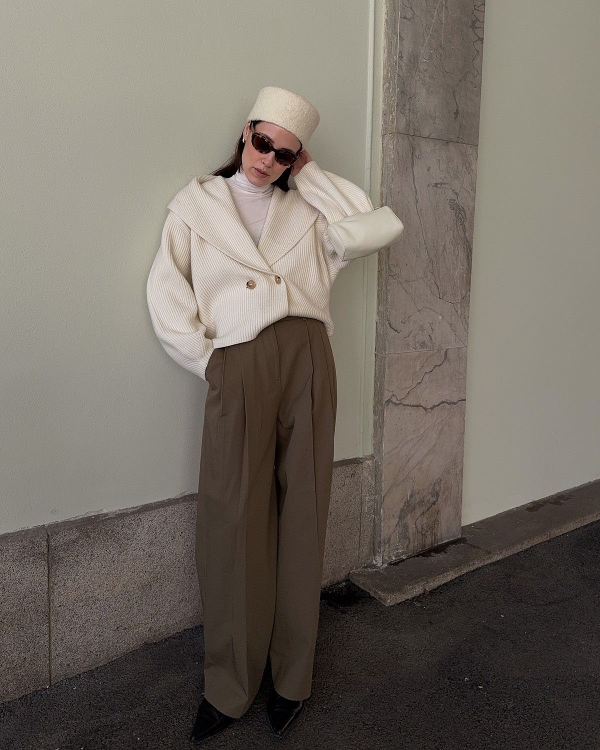Светлые брюки в белых и молочных тонах привносят в осенний гардероб свежесть и элегантность. Эти цвета создают ощущение чистоты и изысканности, прекрасно контрастируя с более темными осенними оттенками верха. Белые брюки требуют особого внимания к качеству ткани и посадке, так как светлые тона не прощают недостатков кроя. Молочные оттенки более практичны и мягче воспринимаются глазом, создавая нежные, романтичные образы.