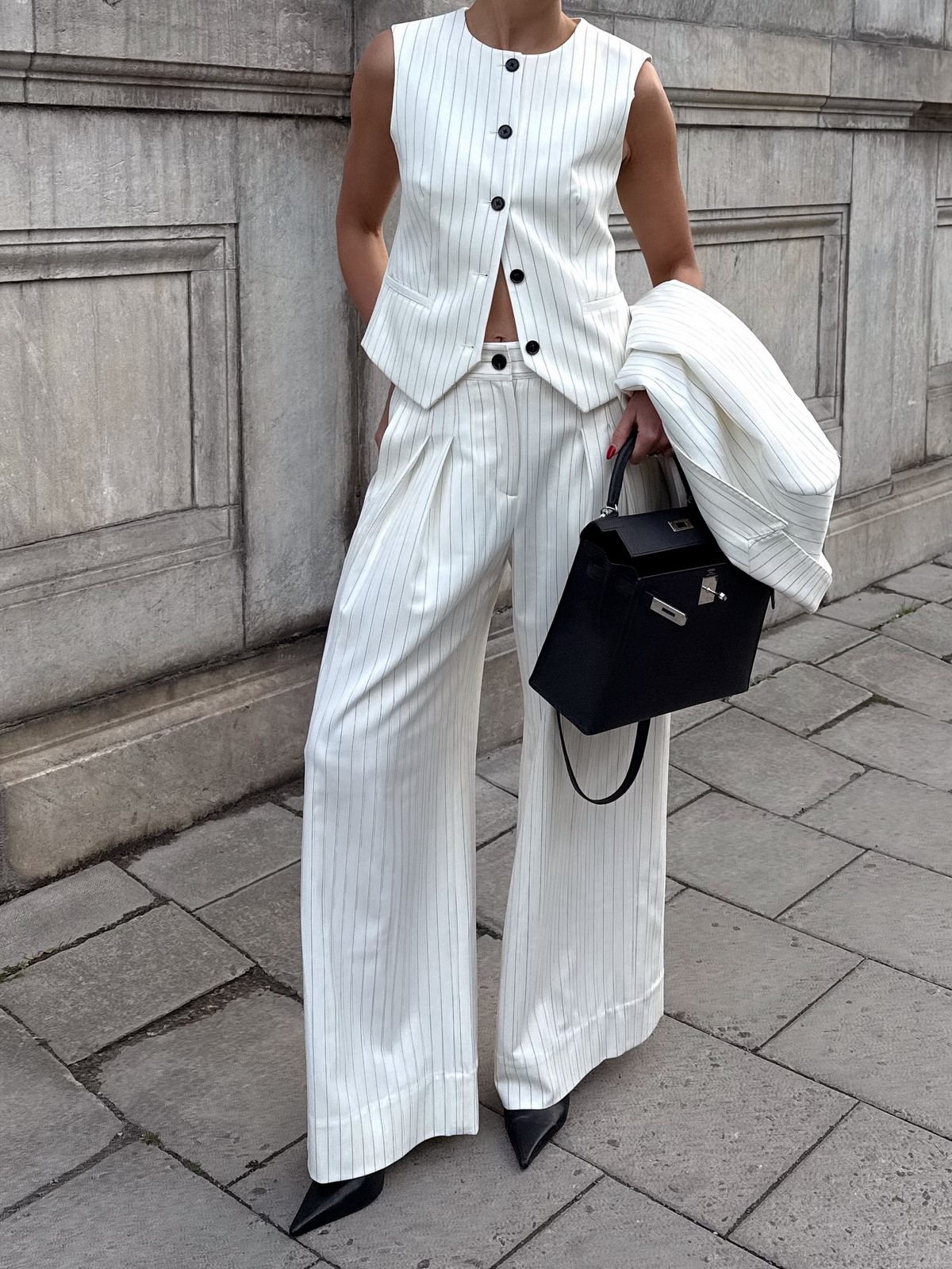 Классический принт в полоску переживает новое рождение в осенней коллекции 2025 года. Дизайнеры экспериментируют с шириной полос, их направлением и контрастностью, создавая как тонкие элегантные, так и широкие графичные варианты. Вертикальные полосы визуально удлиняют силуэт, а горизонтальные добавляют объема. Полосатые брюки легко сочетаются с однотонными верхами, создавая сбалансированные образы, или с другими принтами для более смелых экспериментов.