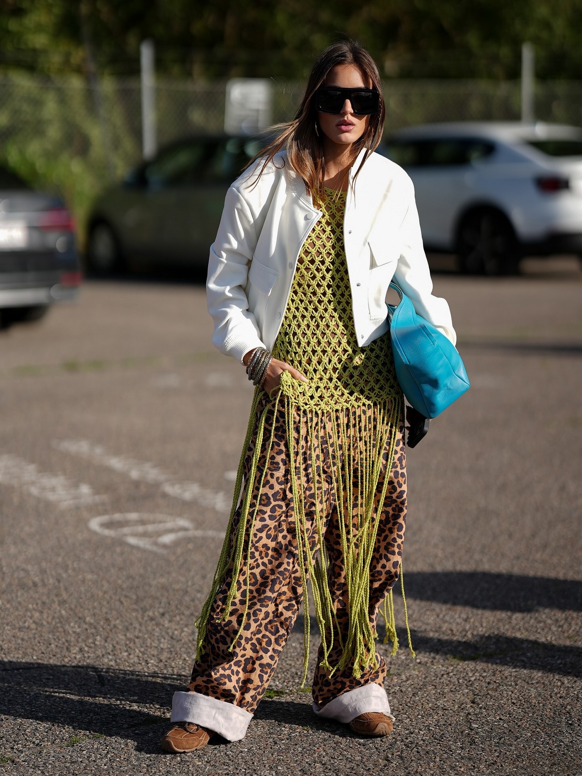 Фактуры и материалы играют ключевую роль: глянцевый атлас соседствует с матовой кожей, прозрачные ткани контрастируют с плотным денимом, а технологичные спортивные материалы интегрируются в повседневные модели.