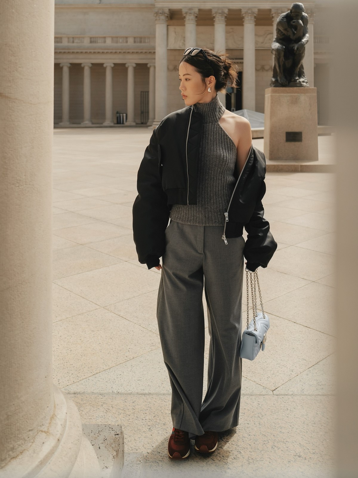 Сочетания с другими предметами гардероба строятся на принципе контраста: объемные брюки с приталенными топами, спортивные модели с элегантными блузами, классические силуэты с нестандартными аксессуарами.