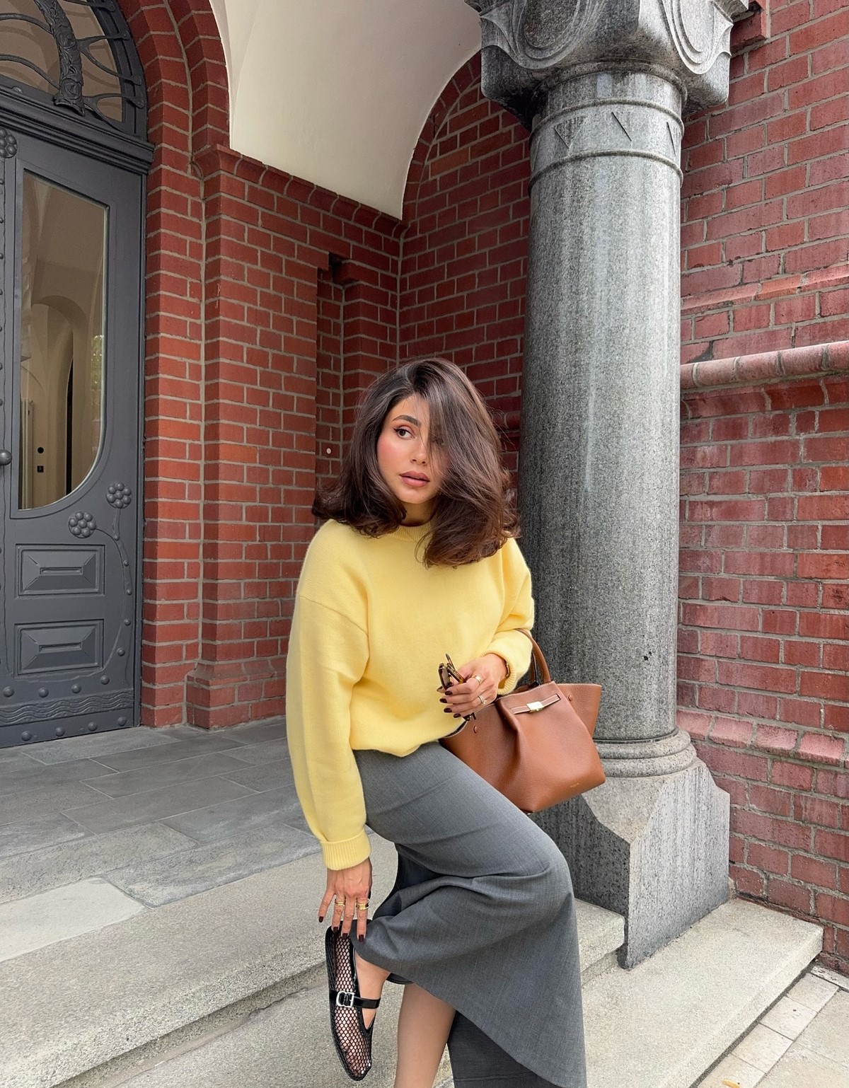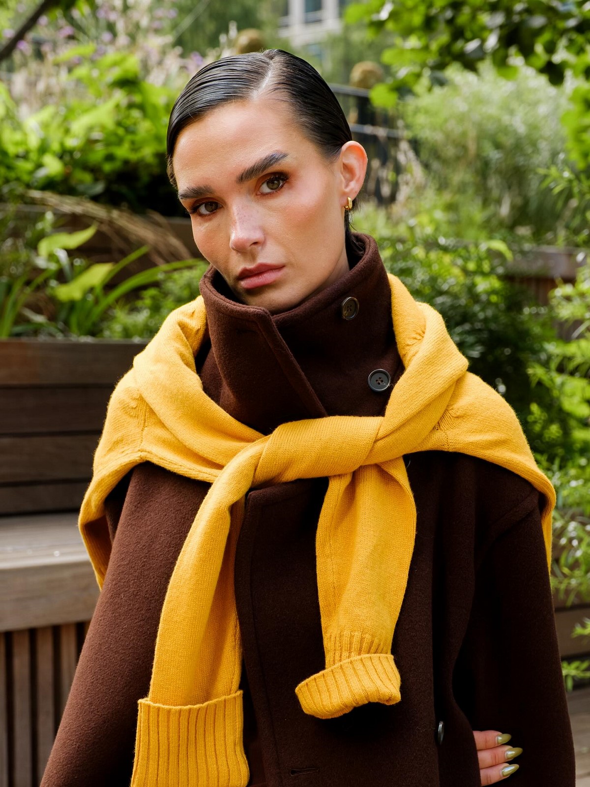 Солнечный желтый цвет призван компенсировать недостаток света в зимние месяцы. От нежного сливочного до насыщенного горчичного – желтые оттенки добавляют оптимизма и тепла в холодную погоду. В сочетании с серым или черным желтый создает стильные и запоминающиеся образы.