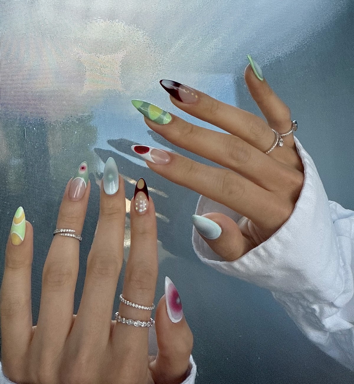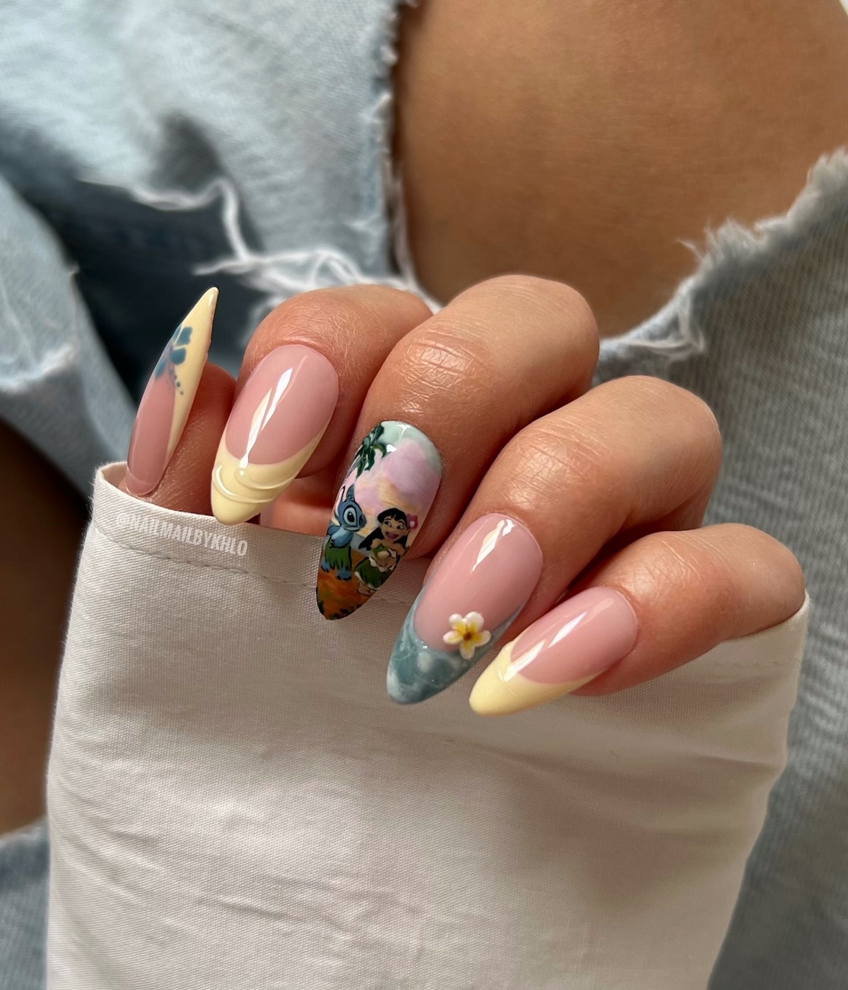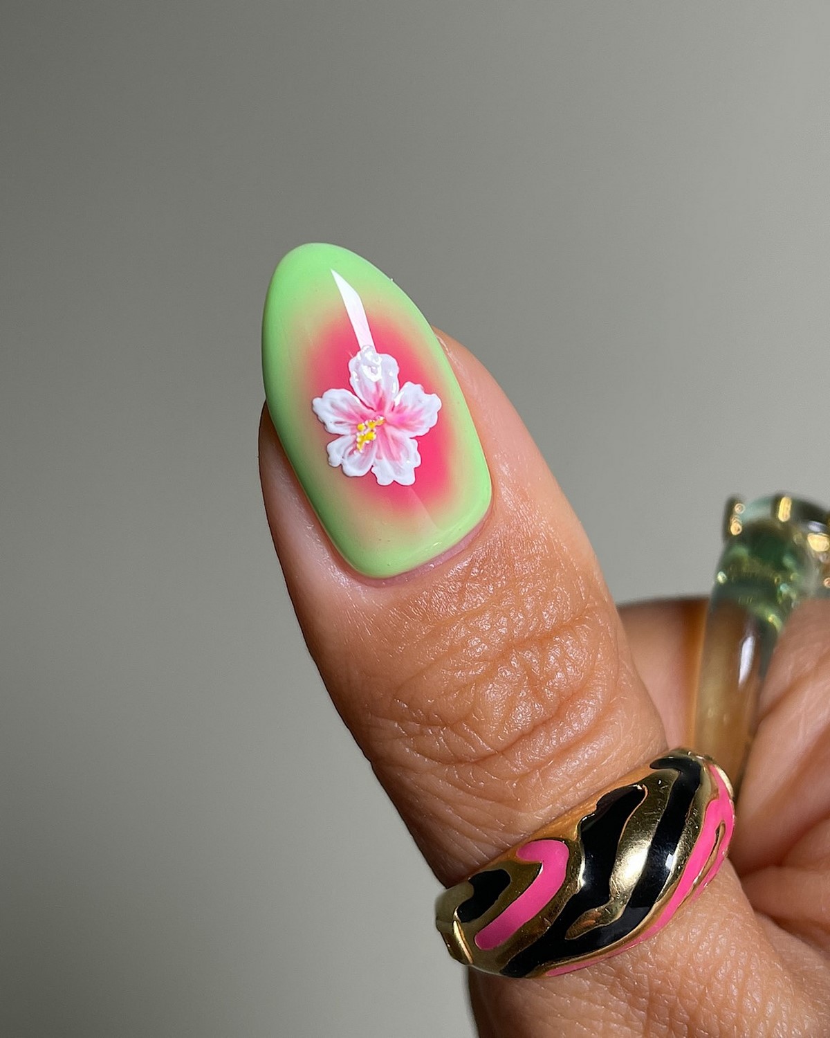 Яркие рисунки тропических фруктов — от арбузов до манго — превращают ногти в миниатюрную выставку летнего изобилия. Техника требует детальной прорисовки и ярких акриловых красок.