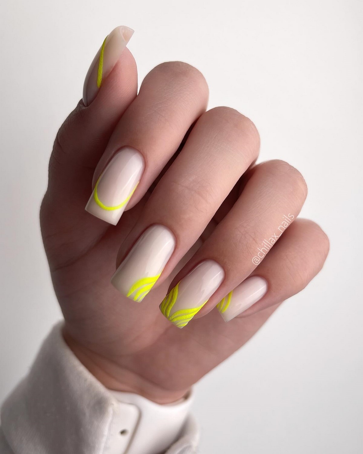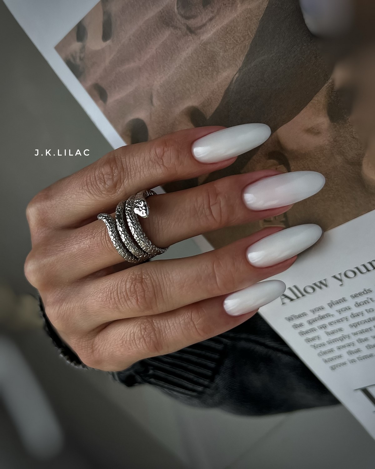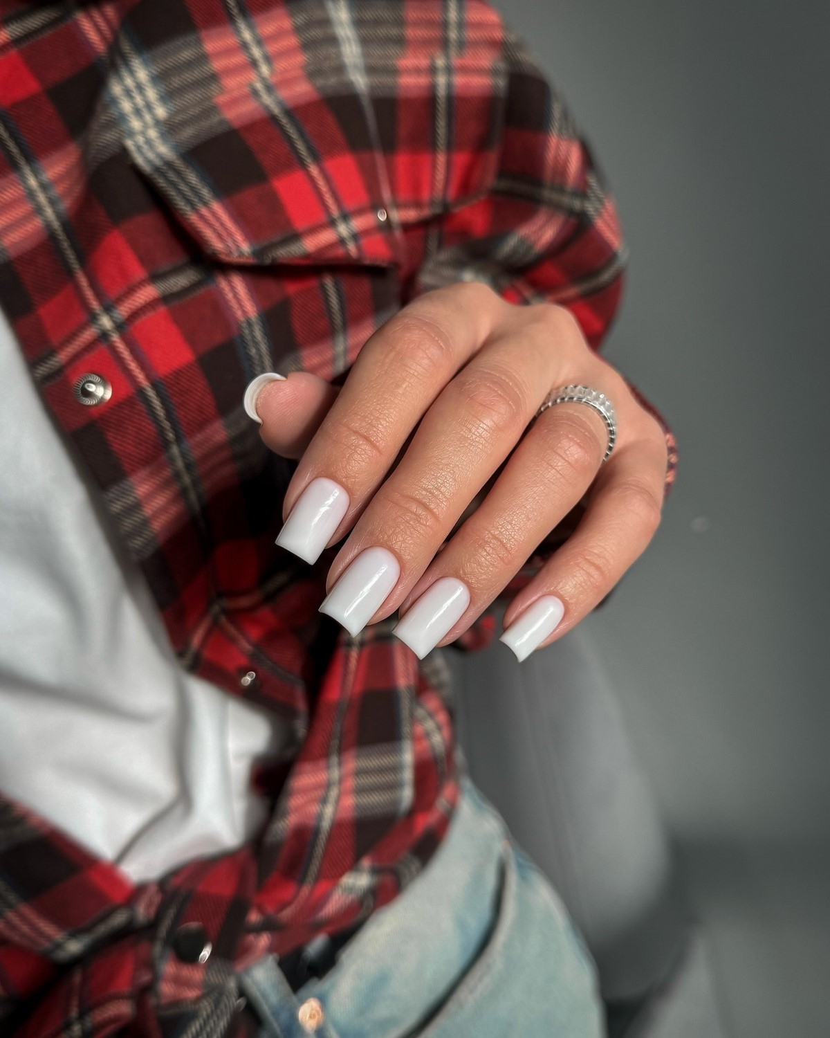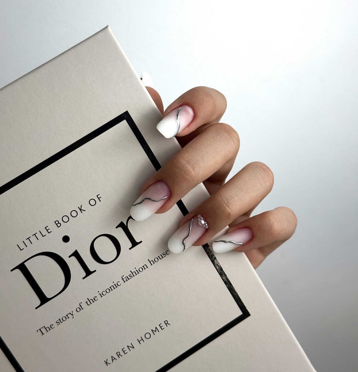 Плавный переход от прозрачной основы к молочно-белому кончику создает эффект натуральности. Этот тренд подходит для офисного дресс-кода и повседневной носки.