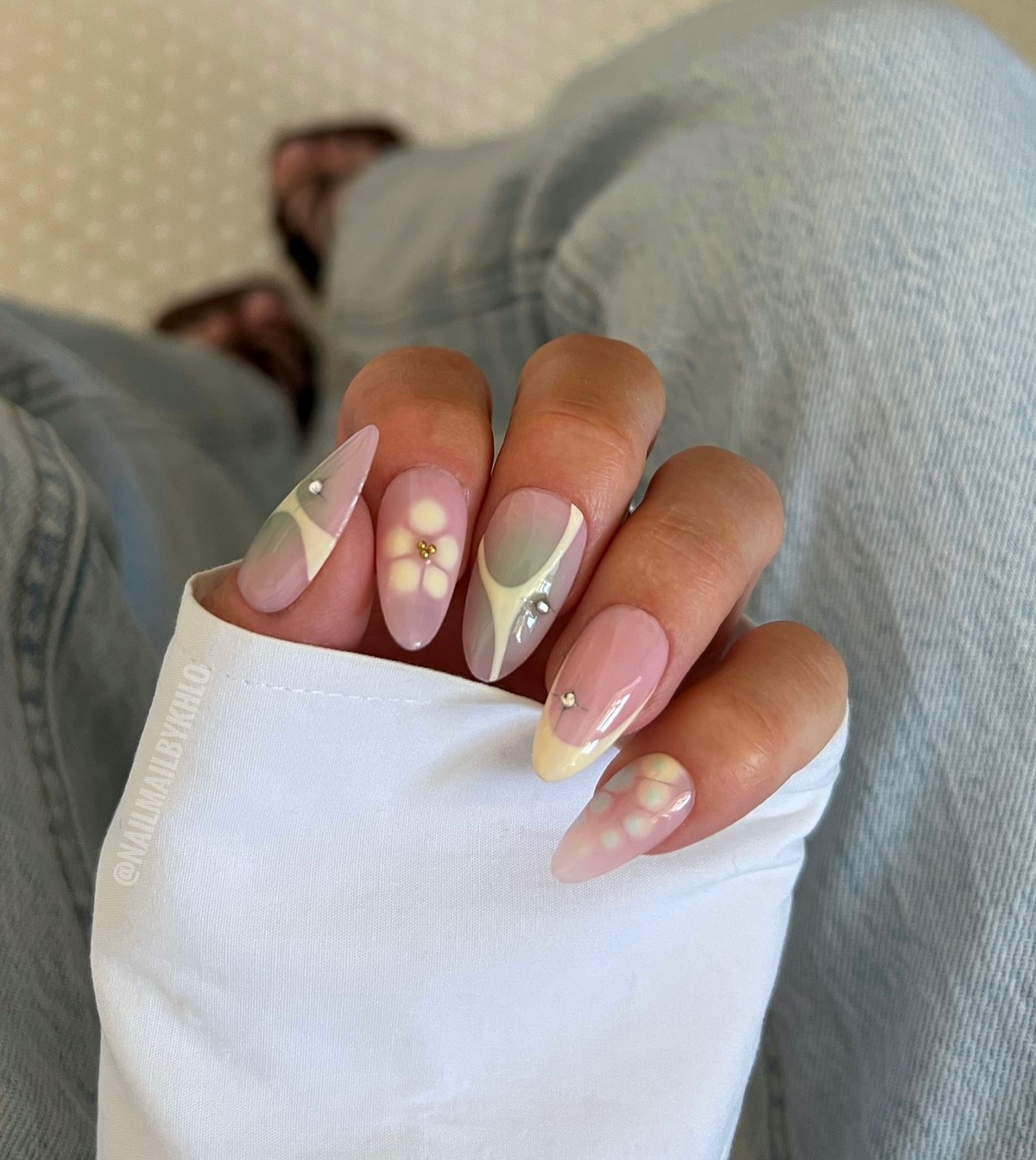 Мягкие оттенки лаванды, мяты и персика создают романтичный образ. Пастельная гамма идеально сочетается с летними нарядами в стиле бохо или прованс.