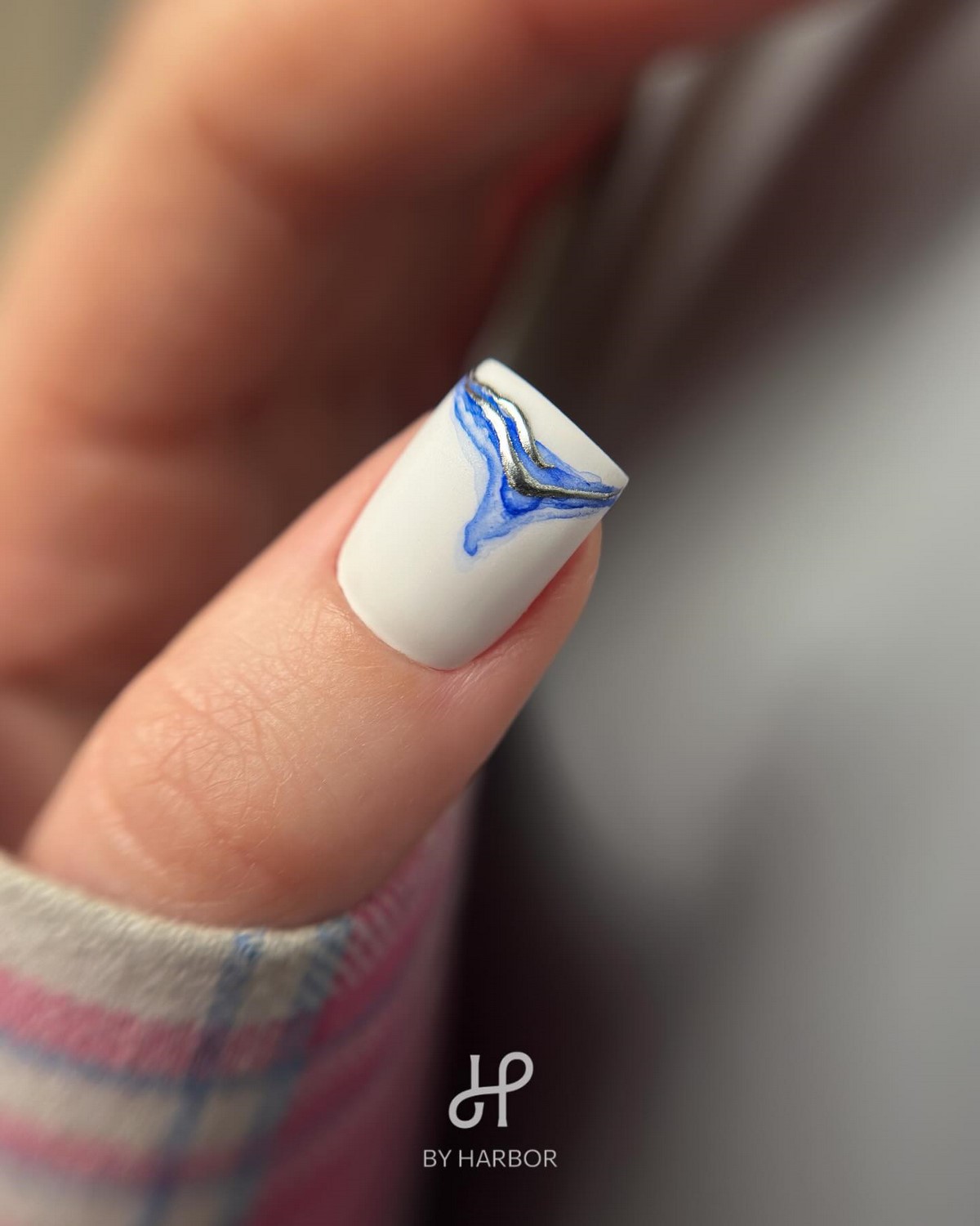 Геометрические формы и хаотичные линии на матовой основе создают современный арт-объект на ногтях. Этот стиль подходит ценительницам минимализма с художественным уклоном.
