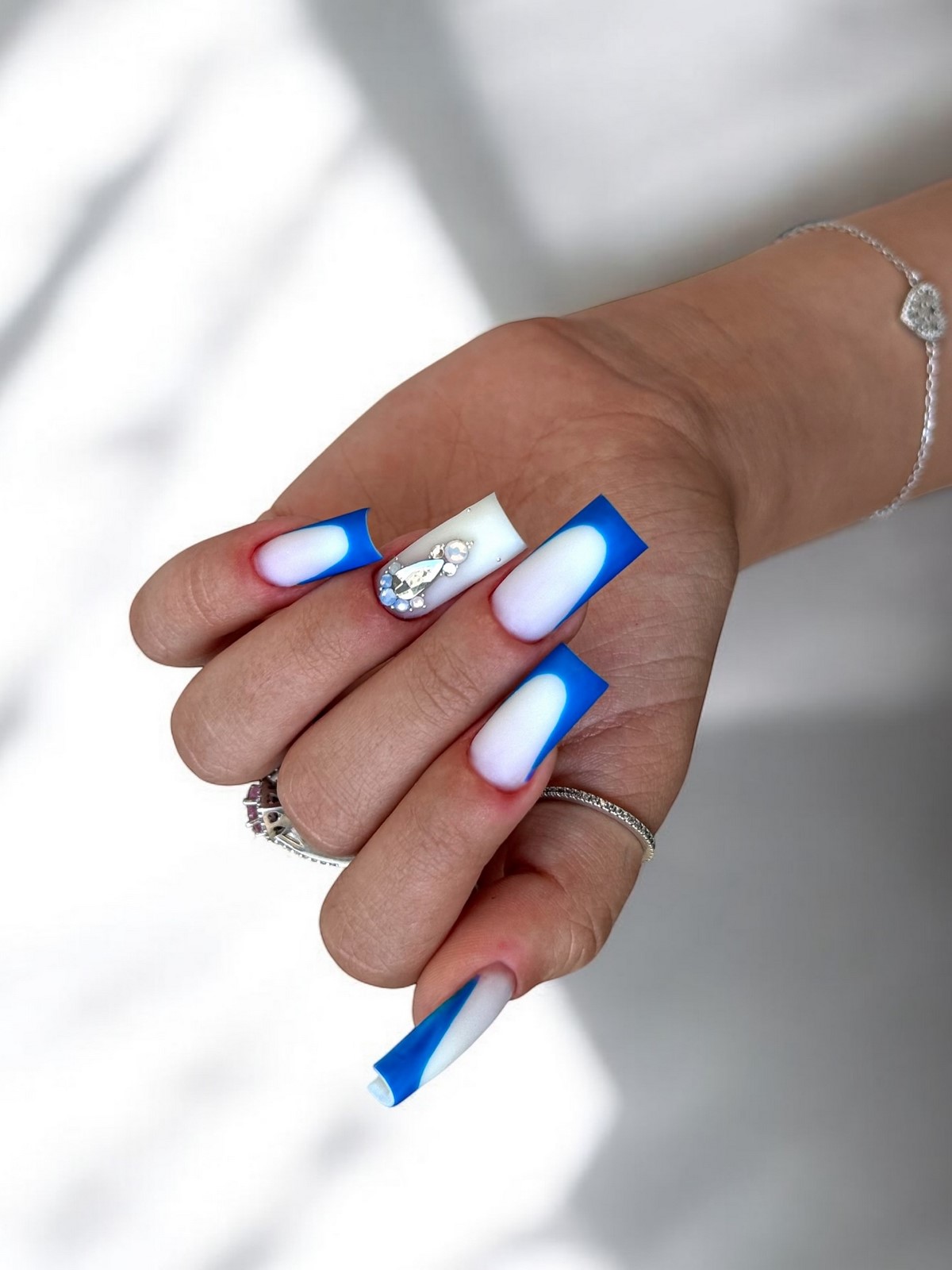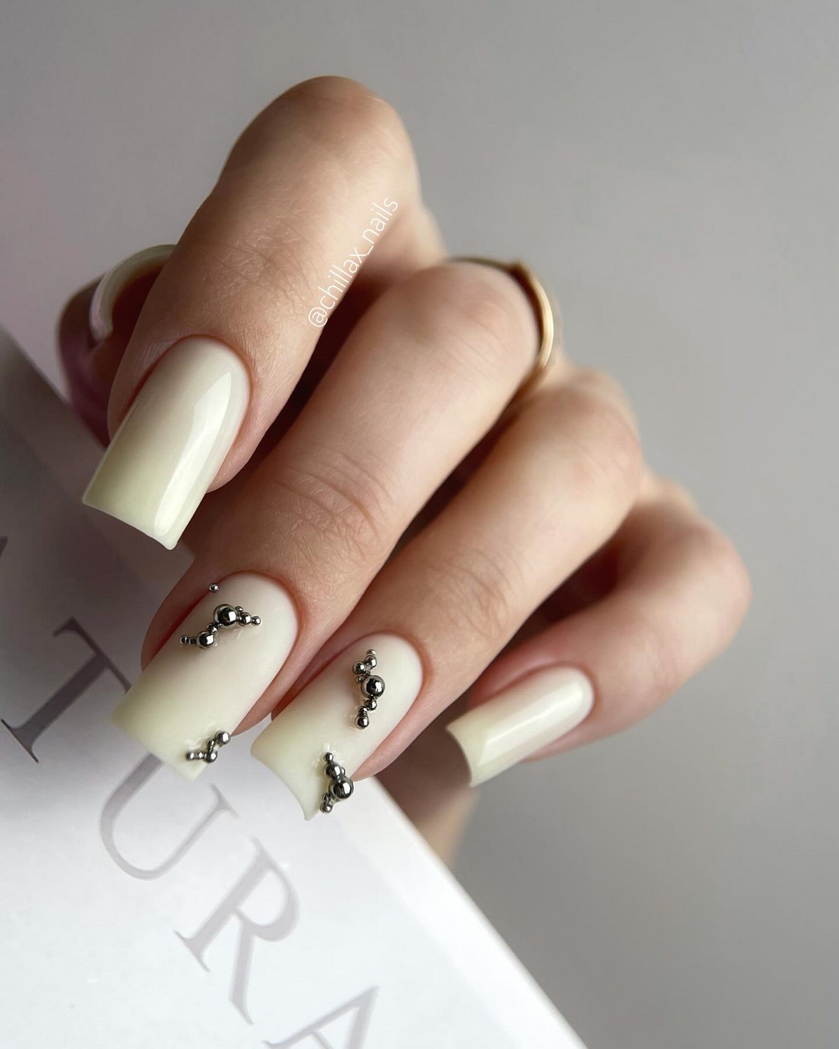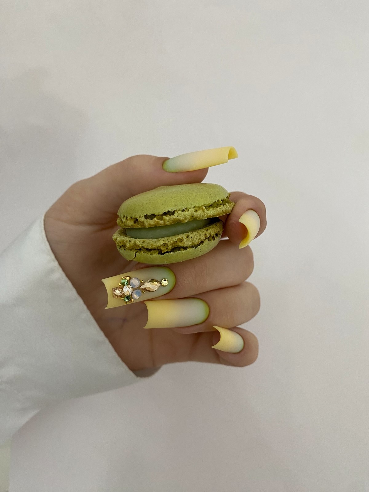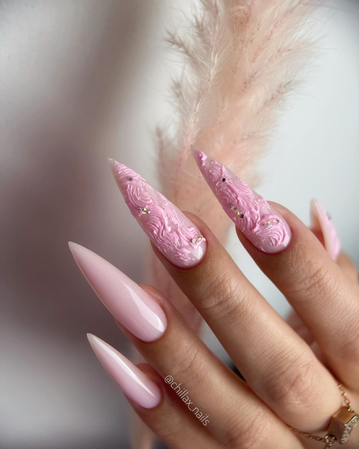 Монохромный подход с использованием крупных страз того же оттенка, что и основное покрытие, создает элегантный тон-в-тон эффект. Такой дизайн выглядит дорого и изысканно. Крупные элементы становятся центральным акцентом композиции, не перегружая общий вид.