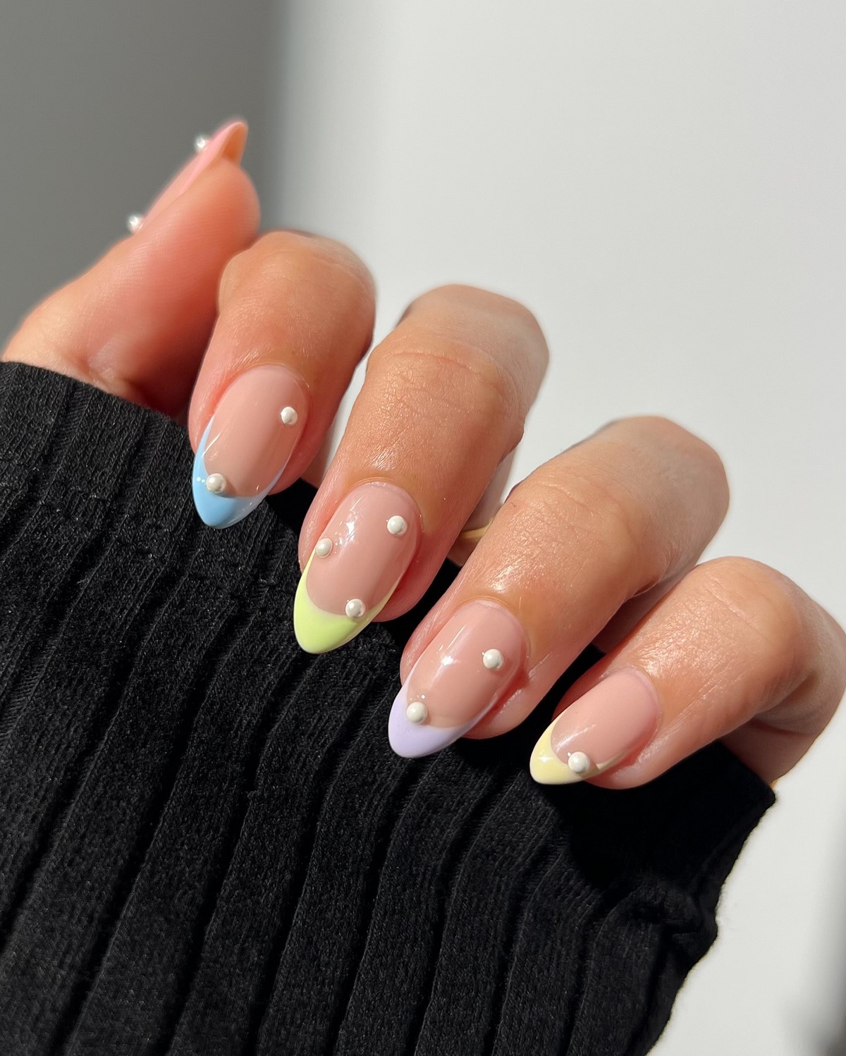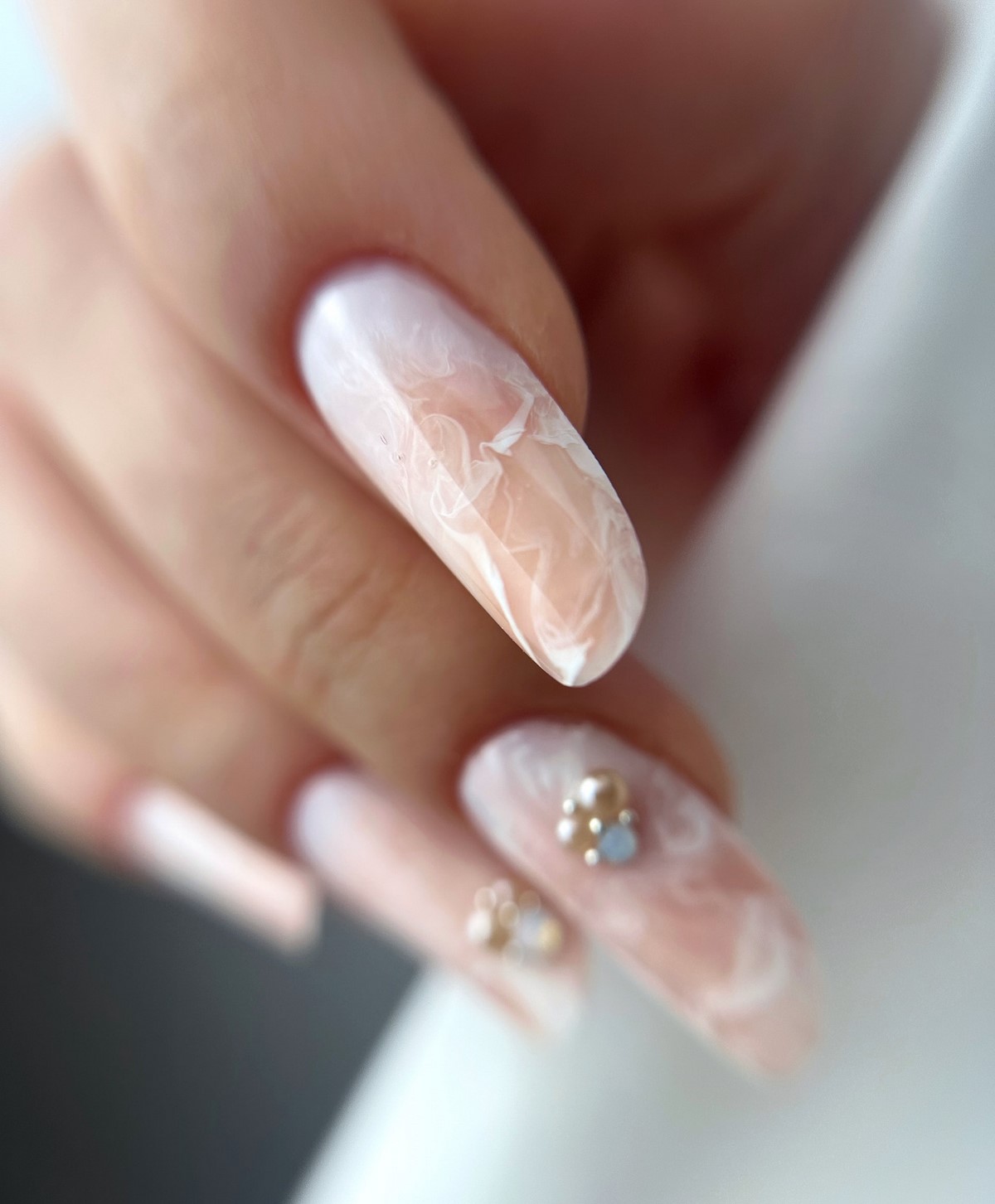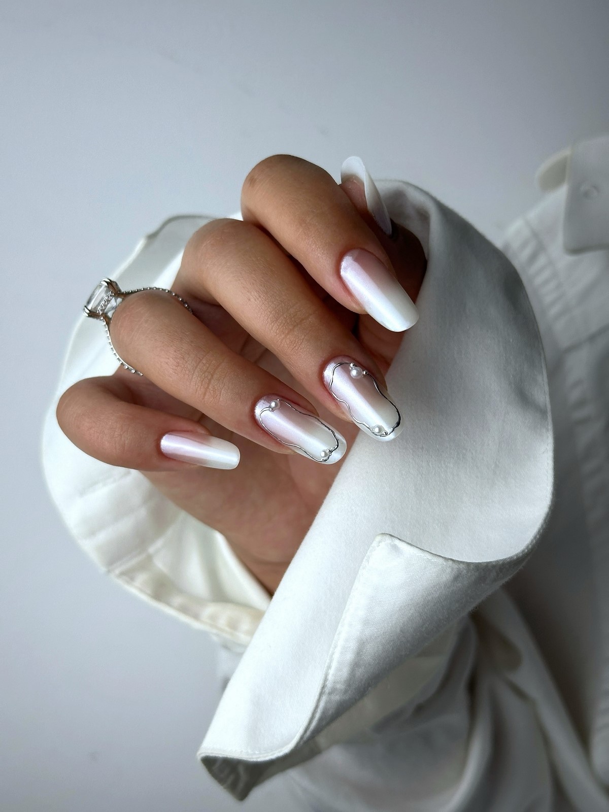 Нежное сочетание нюдовых оттенков с элегантными жемчужинами создает утонченный и женственный образ. Такой дизайн идеально подходит для деловых встреч и торжественных мероприятий. Жемчужины могут располагаться у основания ногтя или создавать изящные линии по всей поверхности.