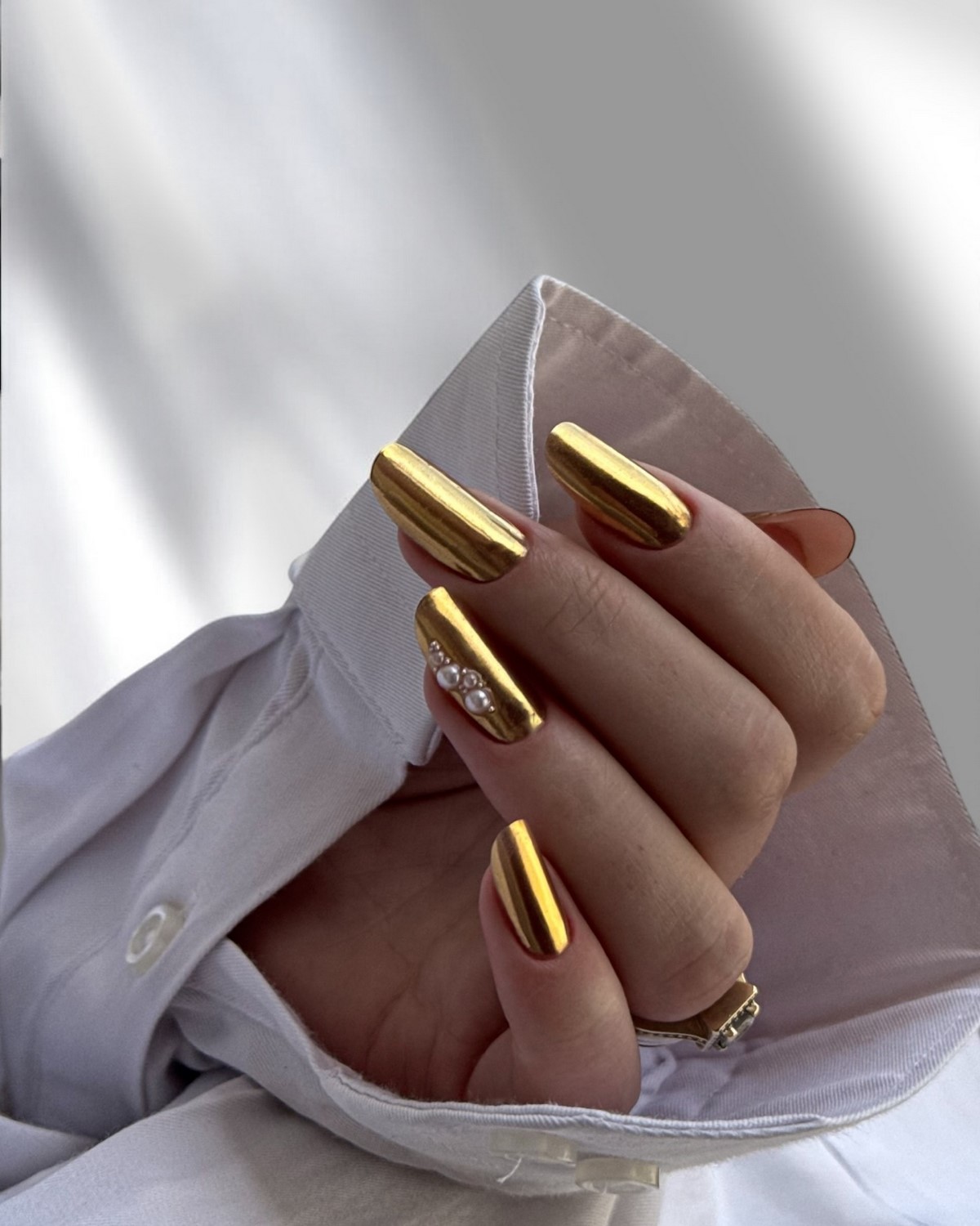 Сочетание зеркальной втирки с кристаллами создает футуристический и современный образ. Металлический блеск втирки гармонично дополняется сиянием страз. Этот тренд особенно популярен для вечерних выходов и фотосессий.