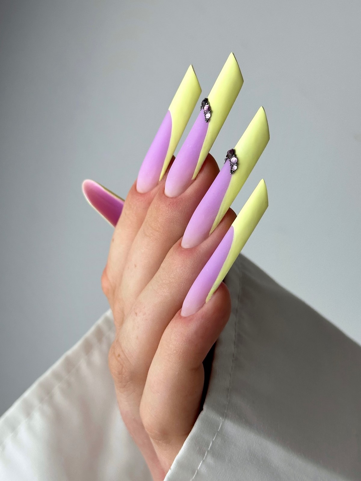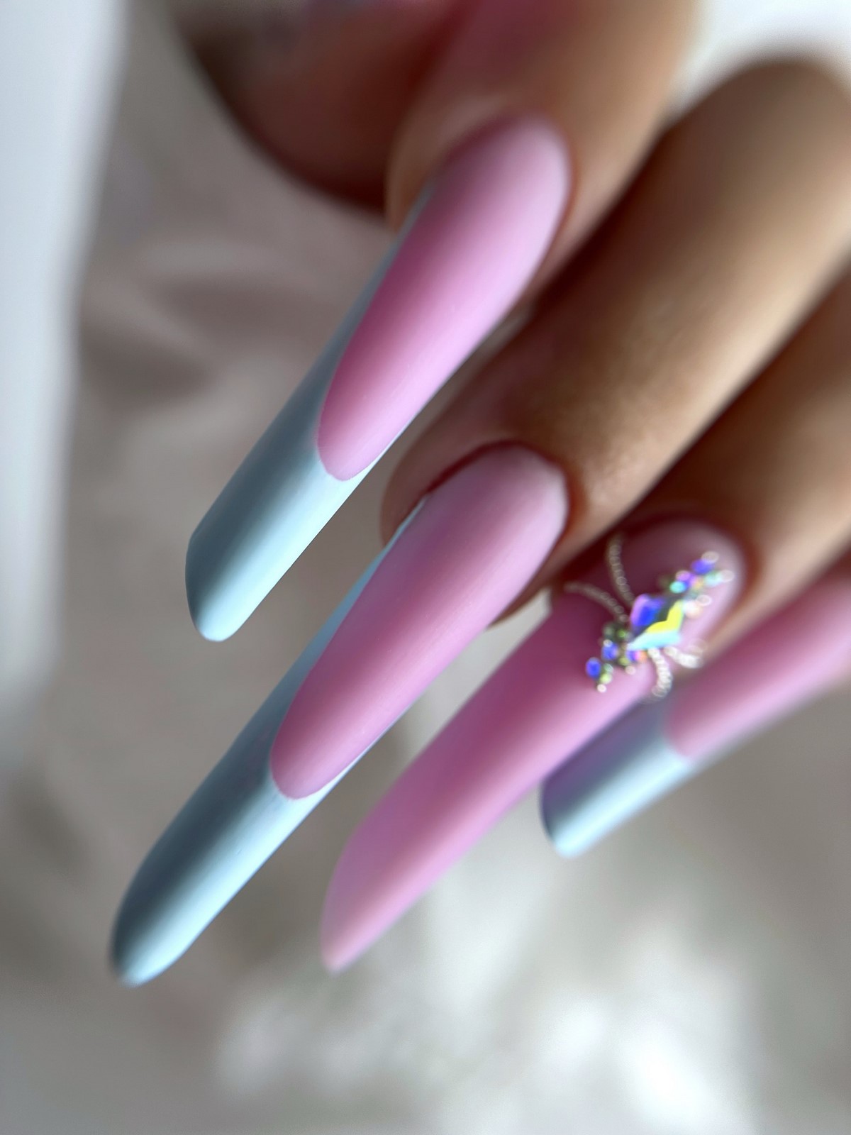 Форма и длина ногтей. Актуальны как короткие овальные и миндалевидные ногти, так и длинные формы — «балерина», «гробик», «стилет». Но даже на коротких ногтях стразы выглядят эффектно.