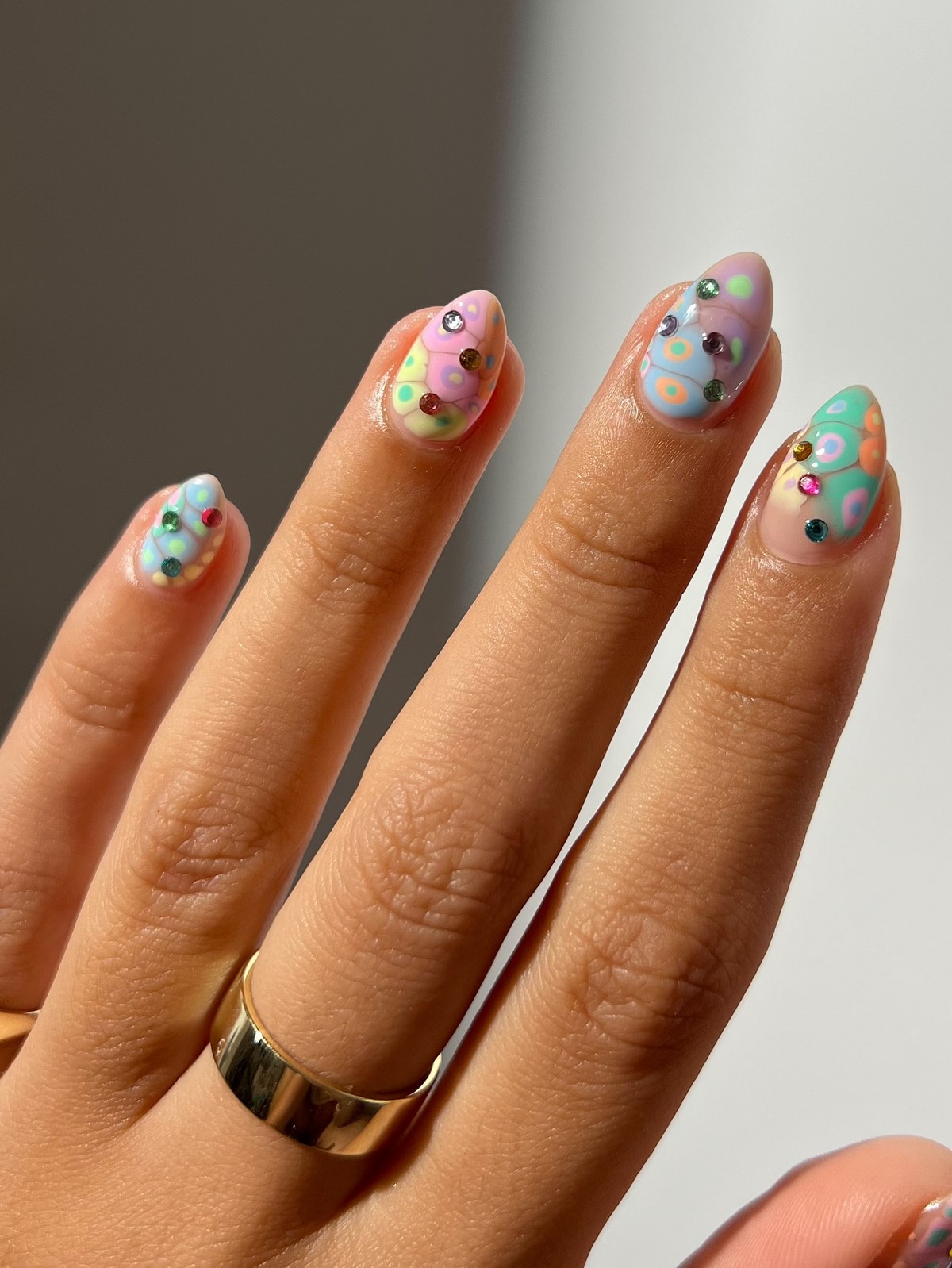 Крупные стразы в цвет маникюра