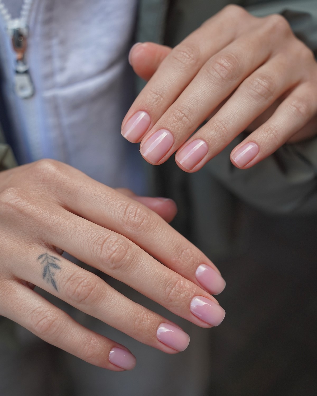Визуально ногти будто «дышат» — нет ощущения наслоений, тяжести, плотной текстуры. Именно в этом и заключается его популярность — такая техника подчеркивает природную форму и цвет ногтя, придавая ему сияние.