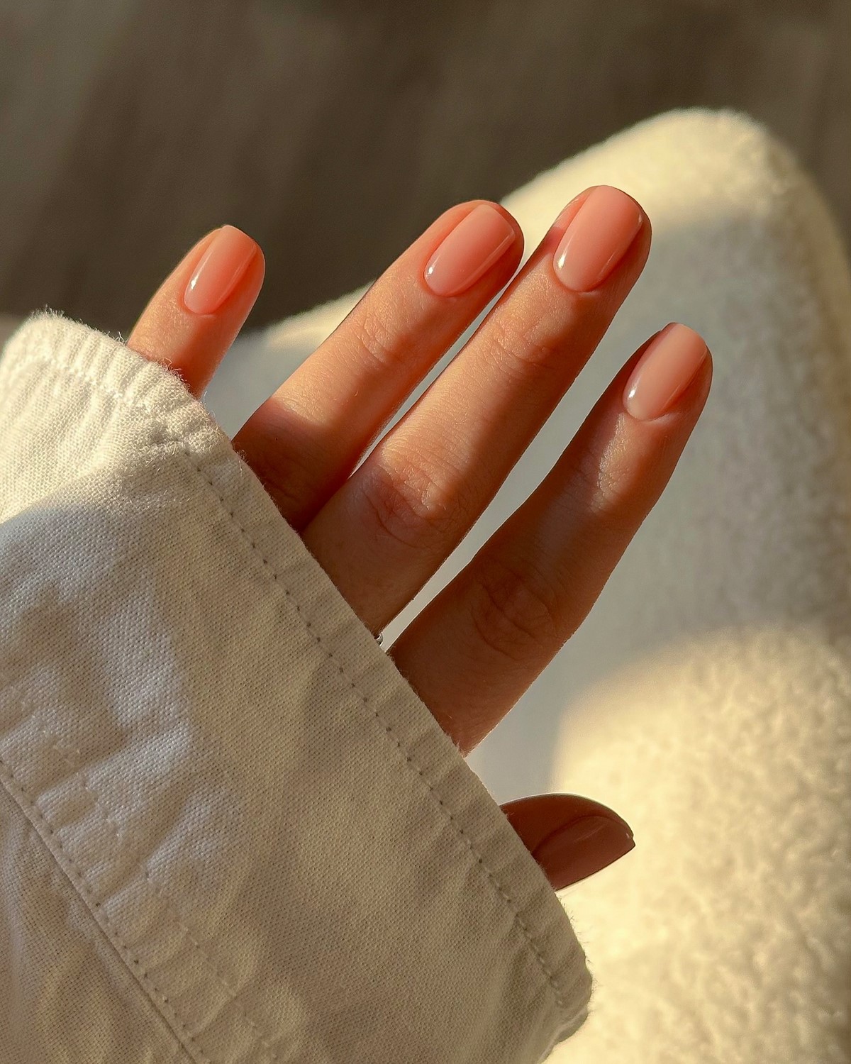 Чистое, ровное покрытие одним полупрозрачным тоном — выбор перфекционистов. Такой маникюр максимально близок к натуральному ногтю, но с безупречным блеском. Он подчёркивает здоровье и ухоженность рук. Уместен в любой ситуации: от деловой встречи до пляжного отдыха. Его часто выбирают те, кто не любит украшения, но ценит эстетику.
