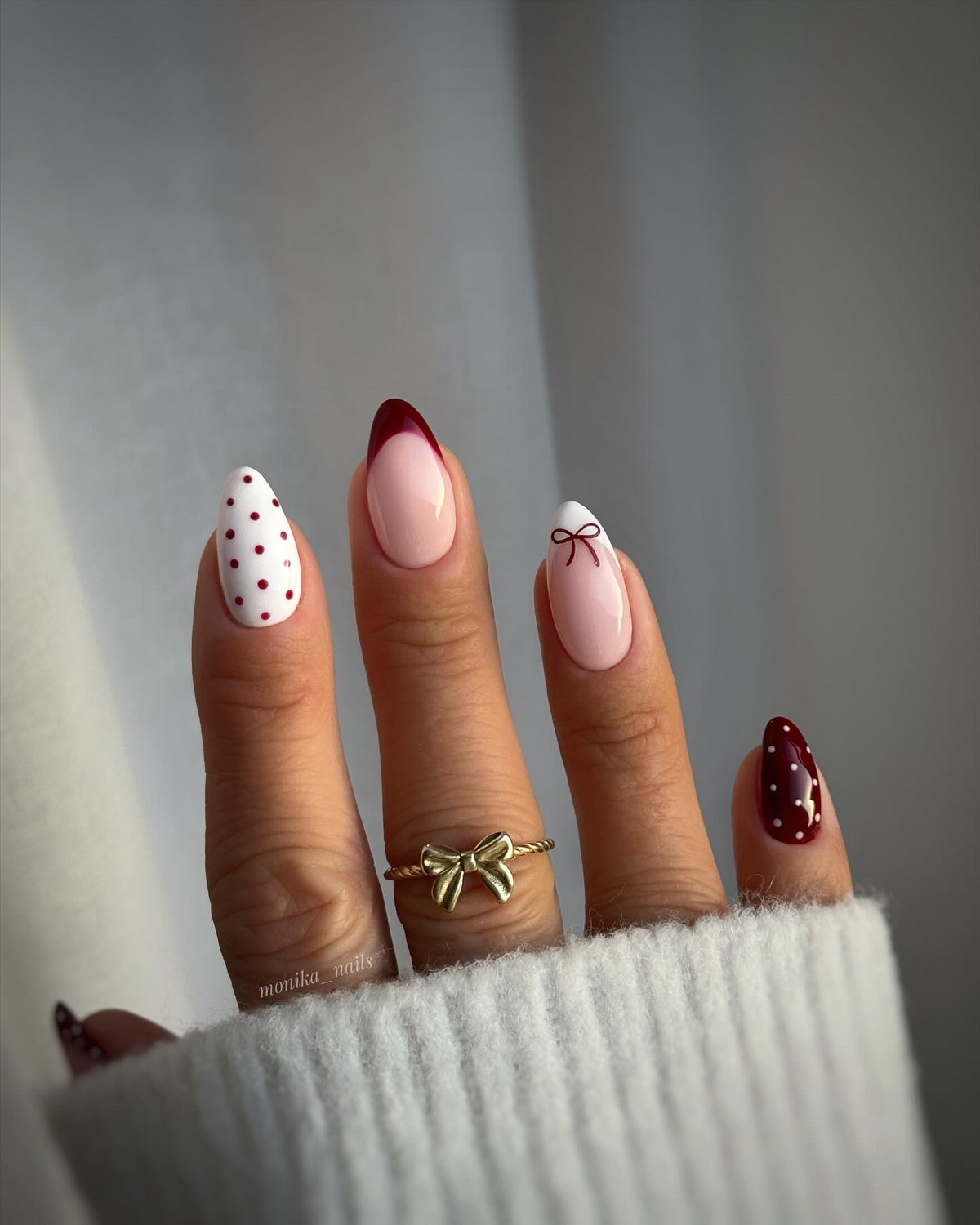 - Бургунди и винные тона – классика зимнего сезона, эти насыщенные оттенки красного придают маникюру элегантность и утонченность