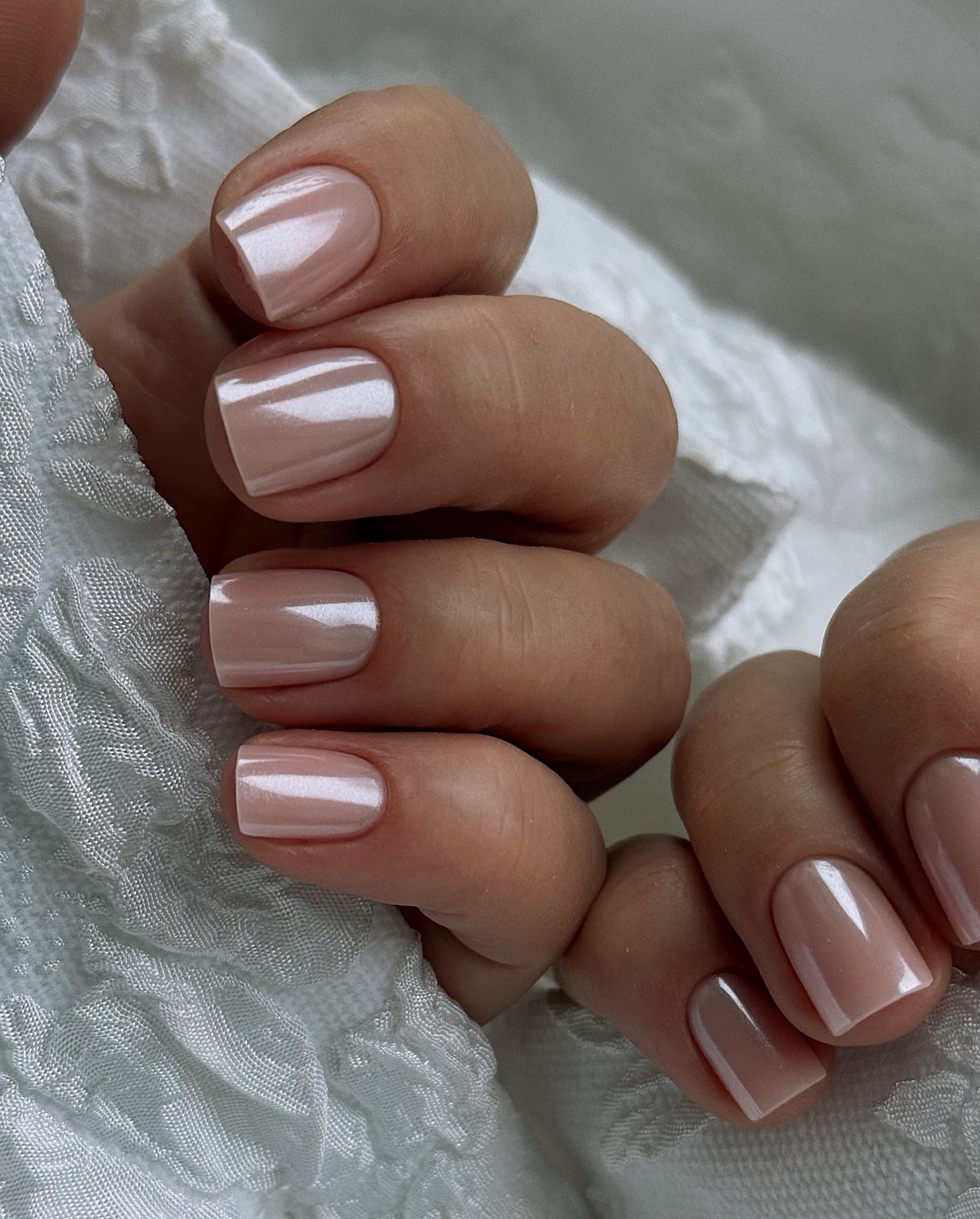 Перламутровые покрытия возвращаются в моду в обновленном формате. В 2026 году они выглядят более сдержанно и современно. Оттенки варьируются от холодного молочного до мягкого розового с переливом.