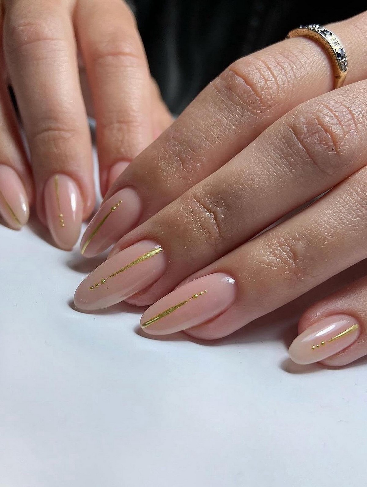 ВАЖНО: в нюдово-золотом маникюре решающее значение имеет баланс. Один акцентный элемент выглядит куда стильнее, чем обилие декора на каждом ногте.