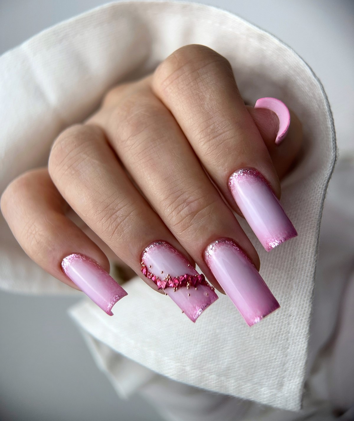 Пастельный градиент остается одним из самых востребованных решений года. Мягкие переходы между молочным, розовым, персиковым или лавандовым оттенками создают визуальную глубину и легкость. Такой маникюр выглядит нежно и современно одновременно.